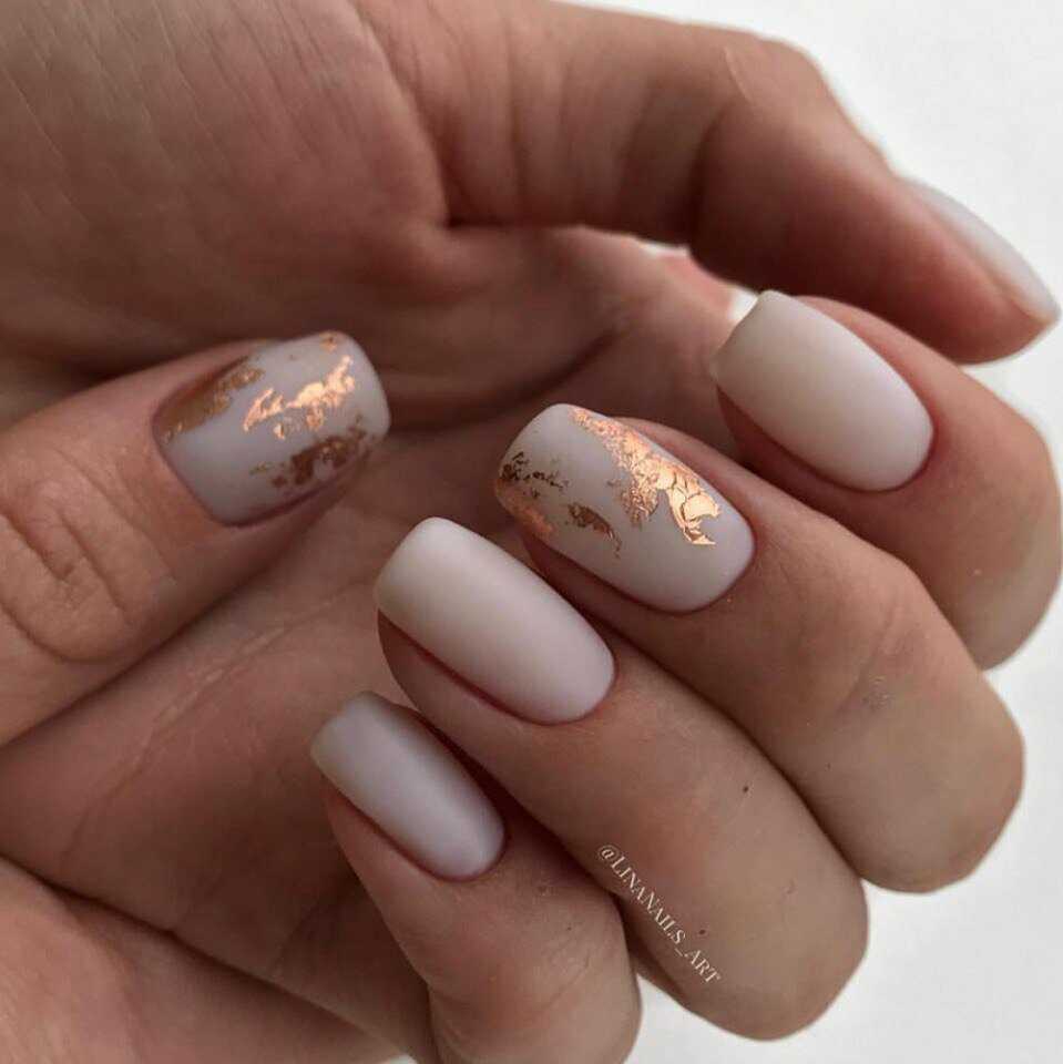 Матовая основа, которая является хитом этого года, также подойдет коротким ногтям. Такой нейл-арт сочетается с любой техникой исполнения и элементами декора.