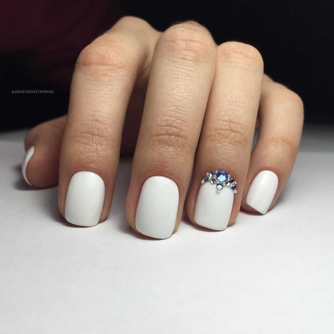 #1 Белый маникюр на короткие квадратные ногти 2020