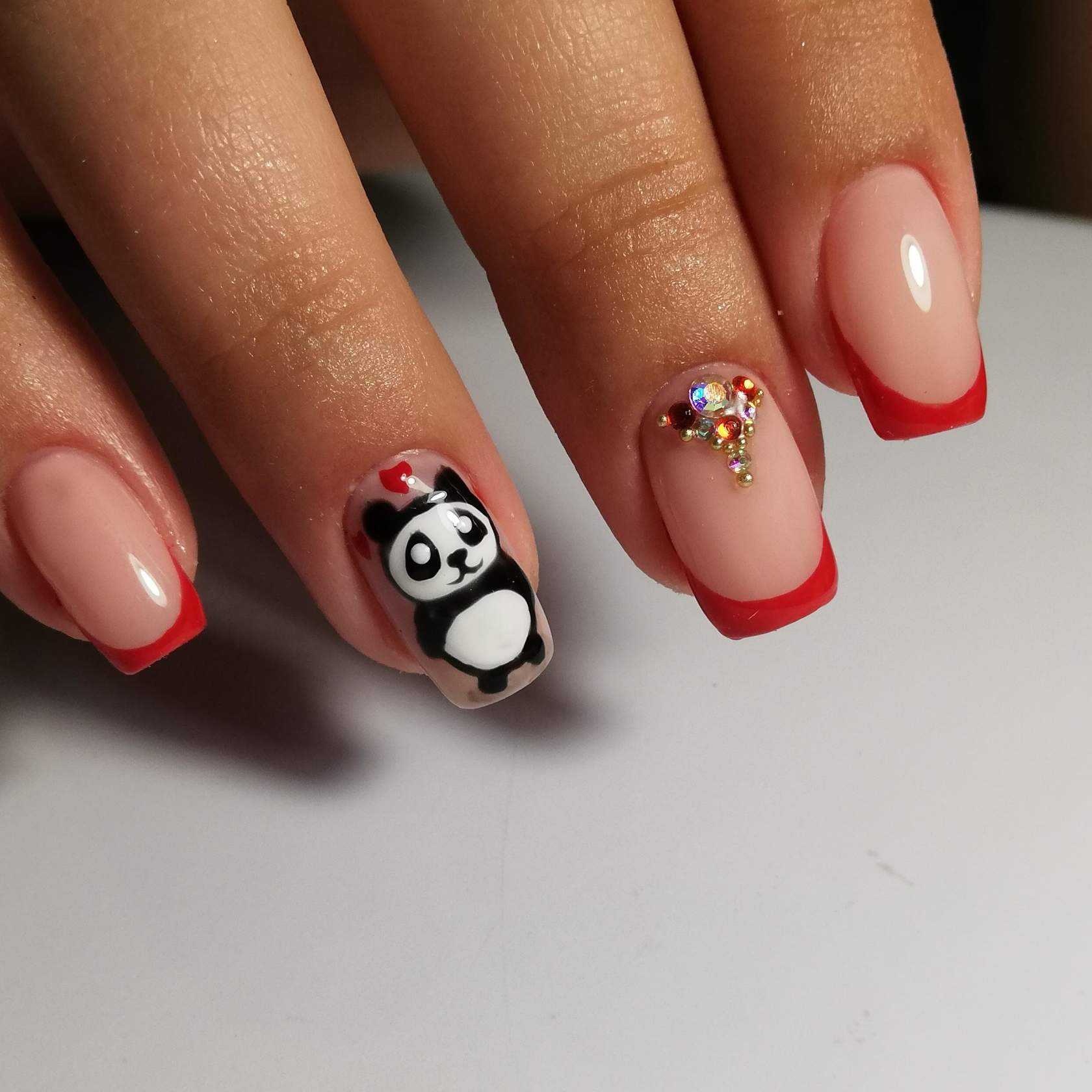 - френч и лунки, дополненные стразами, наклейками или росписью;