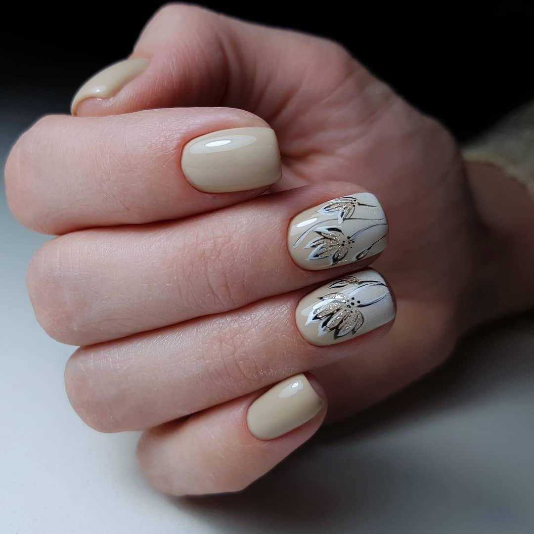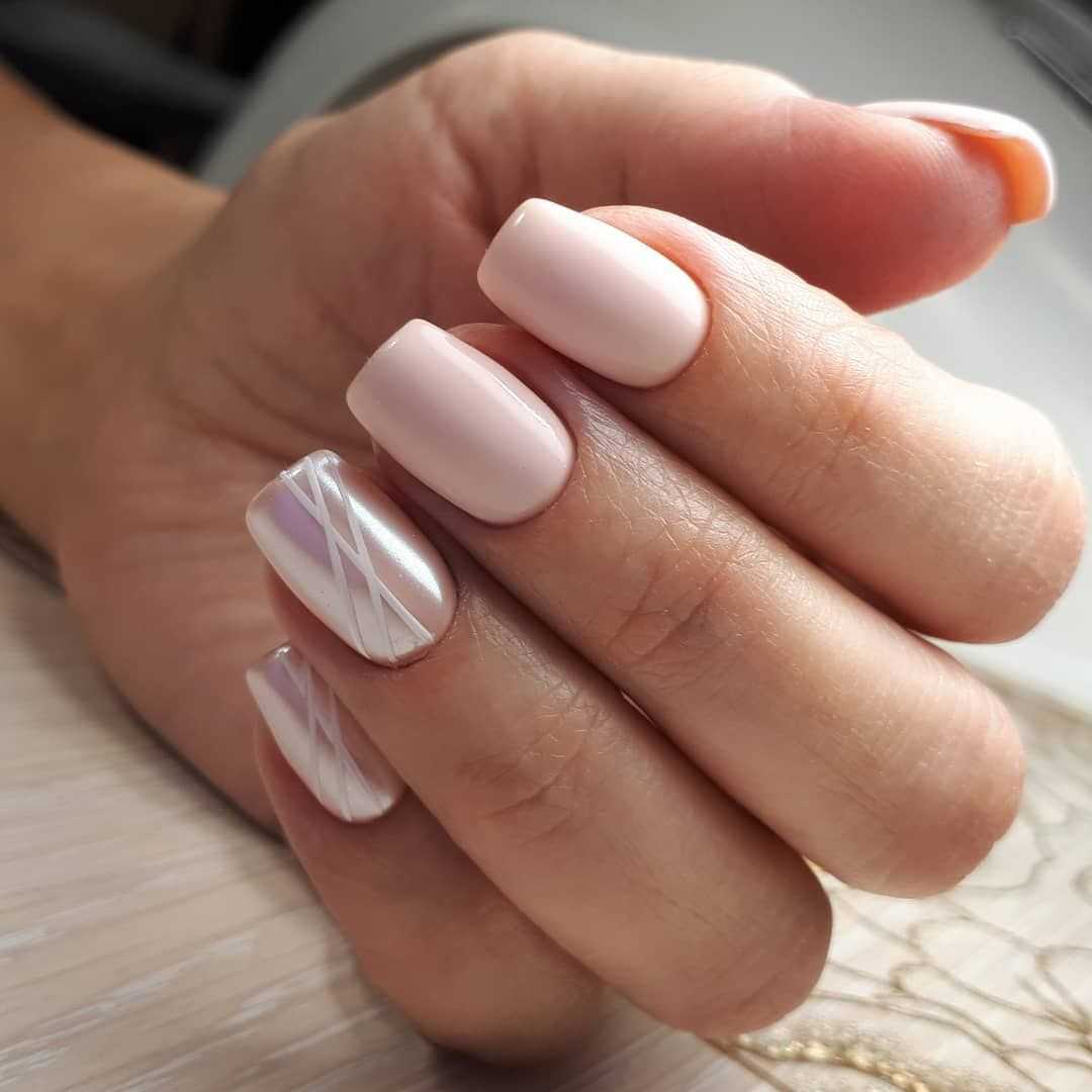 Стоит отметить, что спокойный маникюр отнюдь нельзя назвать скучным. Не обязательно красить ногти в один тон. Можно разбавить однотонный лак каким-либо узором.