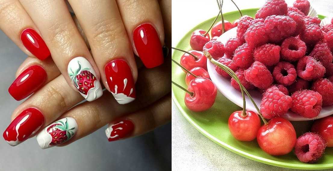 Фрукты на ногтях летом в солнечные дни — это залог хорошего настроения. В этой категории собраны фотографии маникюра с фруктами: вишня, клубника, арбуз, бананы, персики, киви и другие. Любители ягод и фруктов, смогут подобрать подходящий дизайн ногтей с фруктами.