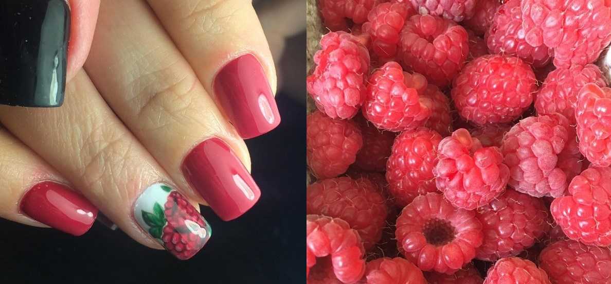 Если настроение требует чего-то более яркого, то можно сделать рисунок на ногтях в виде аппетитных ягод клубники. Для этого потребуется основа, лаки красного, темно-коричневого и зеленого цветов и желтый – для фона. Обработав ногти перед маникюром и придав им желаемую форму, можно начинать наносить рисунок. За основу возьмите лак желтого цвета, двух слоев будет достаточно для яркого эффекта.