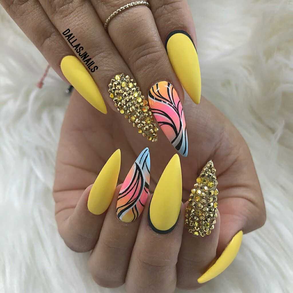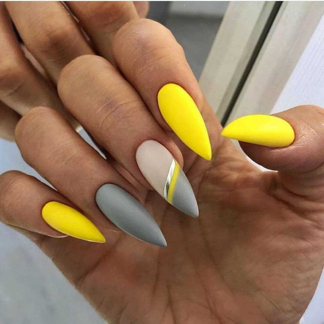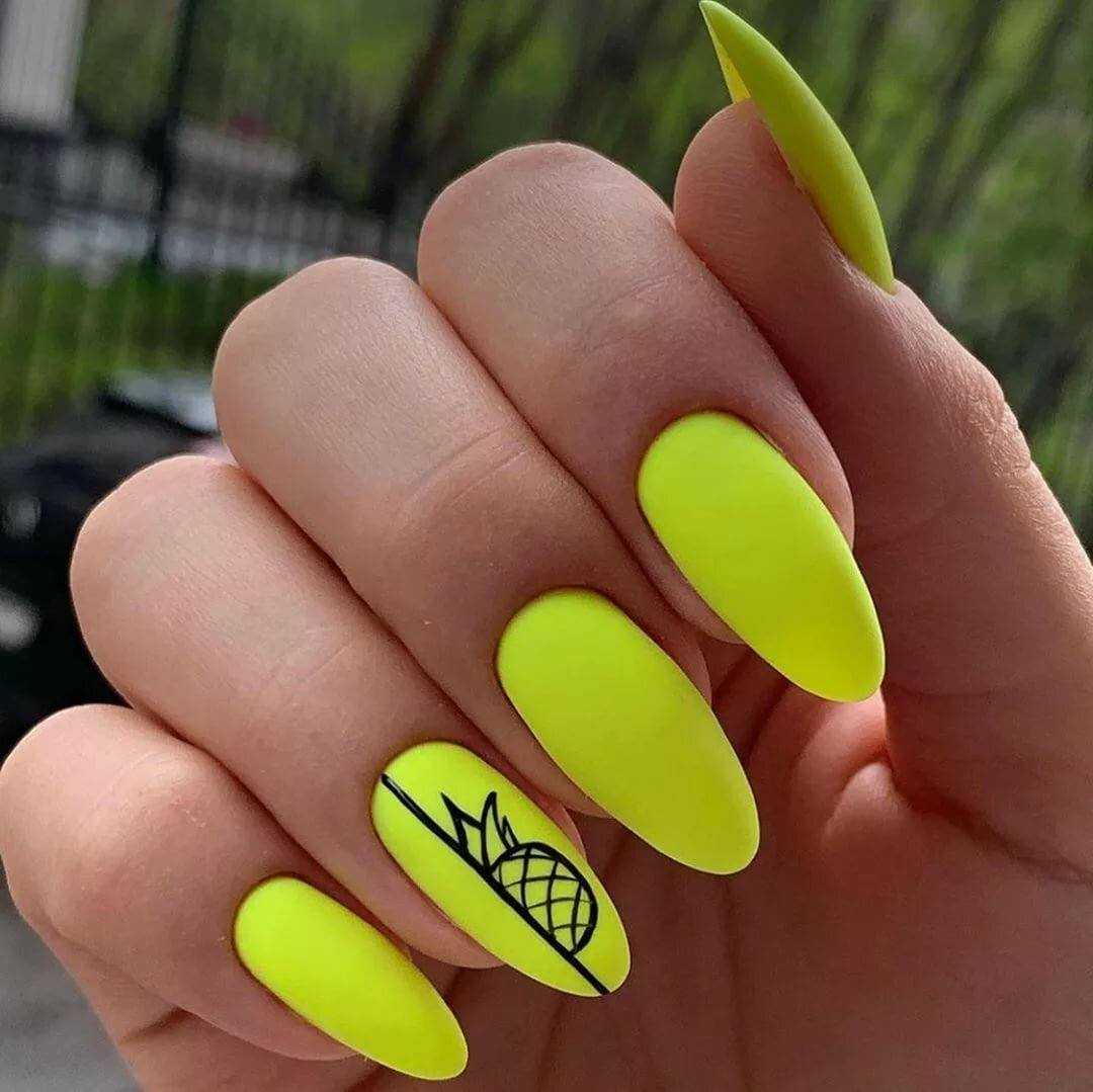 Желтый оттенок вновь на пике популярности. Мягкий и нежный цвет особенно актуален в летний период, в остальные сезоны на его смену приходит горчичный цвет. Полное покрытие ногтей неоновым желтым цветом подходит далеко не всем. Дизайн выглядит экстравагантно и очень ярко, поэтому выполнять его для повседневного образа не рекомендуется.