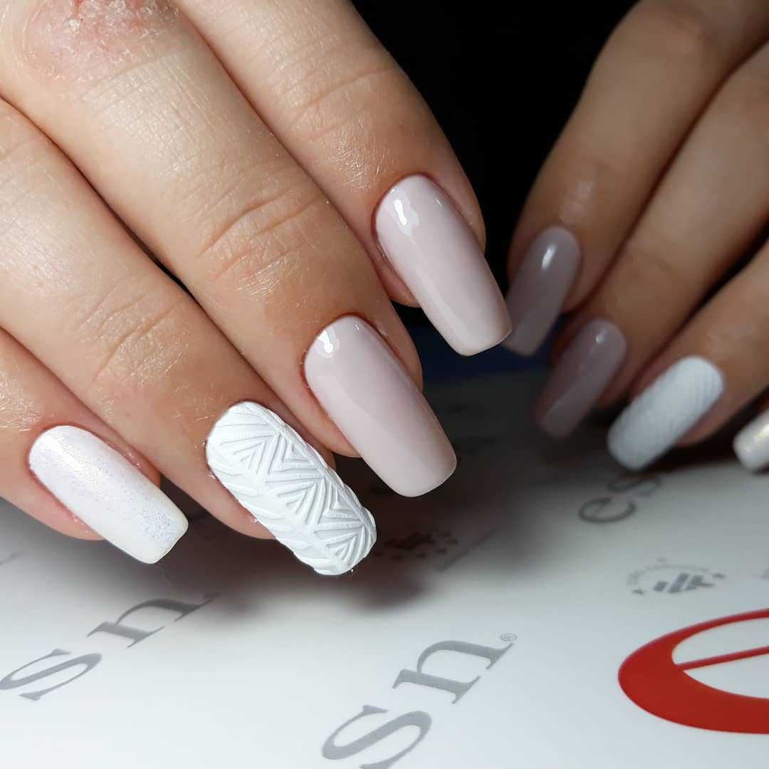 Такой рисунок перекочевал и в сферу нейл-арта. Сегодня в тренде ногти 2023 белые с выпуклой поверхностью, напоминающей поверхность вязаных вещей.