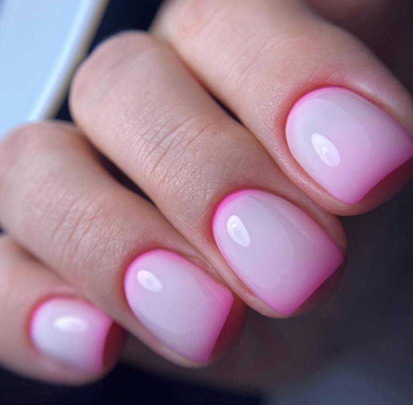 Технике создания маникюра омбре нет равных. Здесь очень красиво смешиваются два и более цвета, где линия слияния размыта. Обычно для создания омбре мастеру потребуется специальный аппарат аэрограф, но если ногти короткие, то он сможет воспользоваться и более доступными, ручными методами.