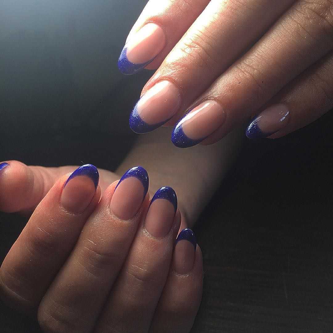 Очень красиво смотрится как классический однотонный синий маникюр, так и сочетание синего с белым цветом.