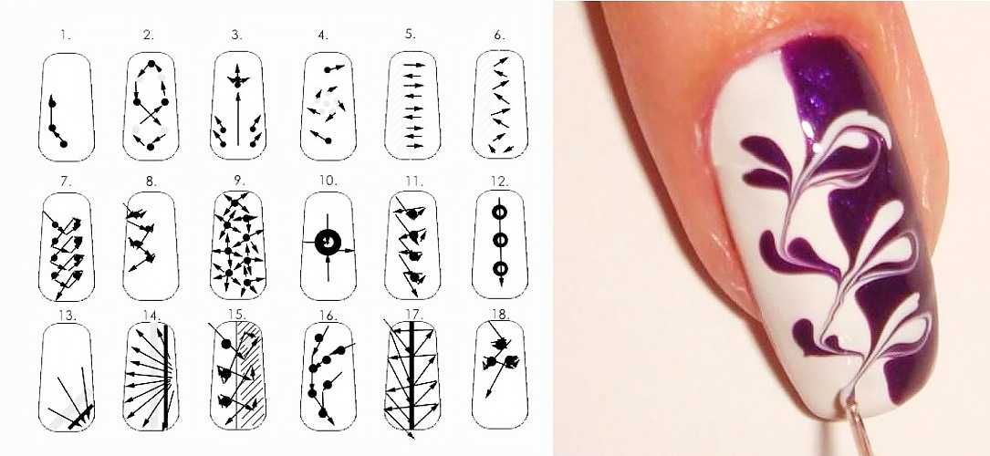 Рисовать на ногтях — все равно, что на листе бумаги. Это не только увлекательный процесс, но и уникальные инструменты, используемые по ходу дела. Примеры смотрите ниже для каждой техники нанесения.