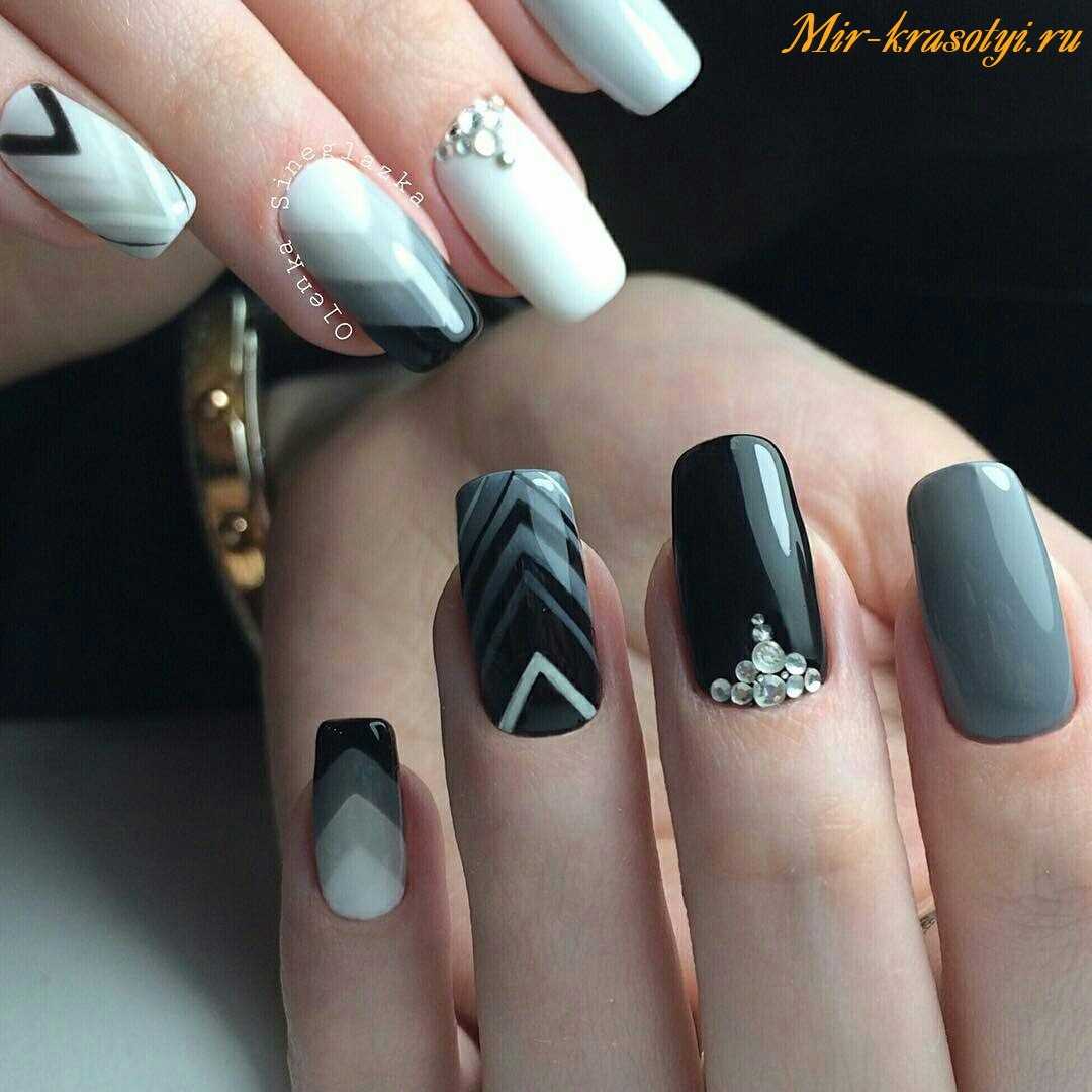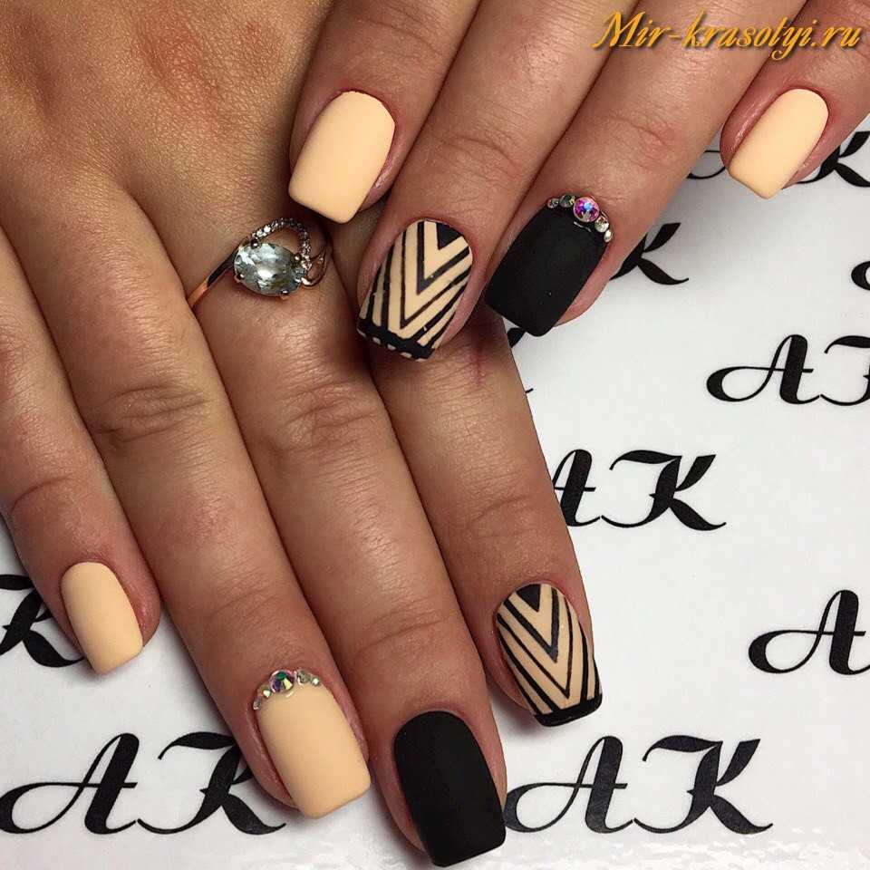 Добавление необычных дизайнов, как геометрия или абстракция, точек или произвольных линий сделают маникюр особенным. Даже простое покрытие с чередованием черного и белого будет красиво смотреться на ногтях.