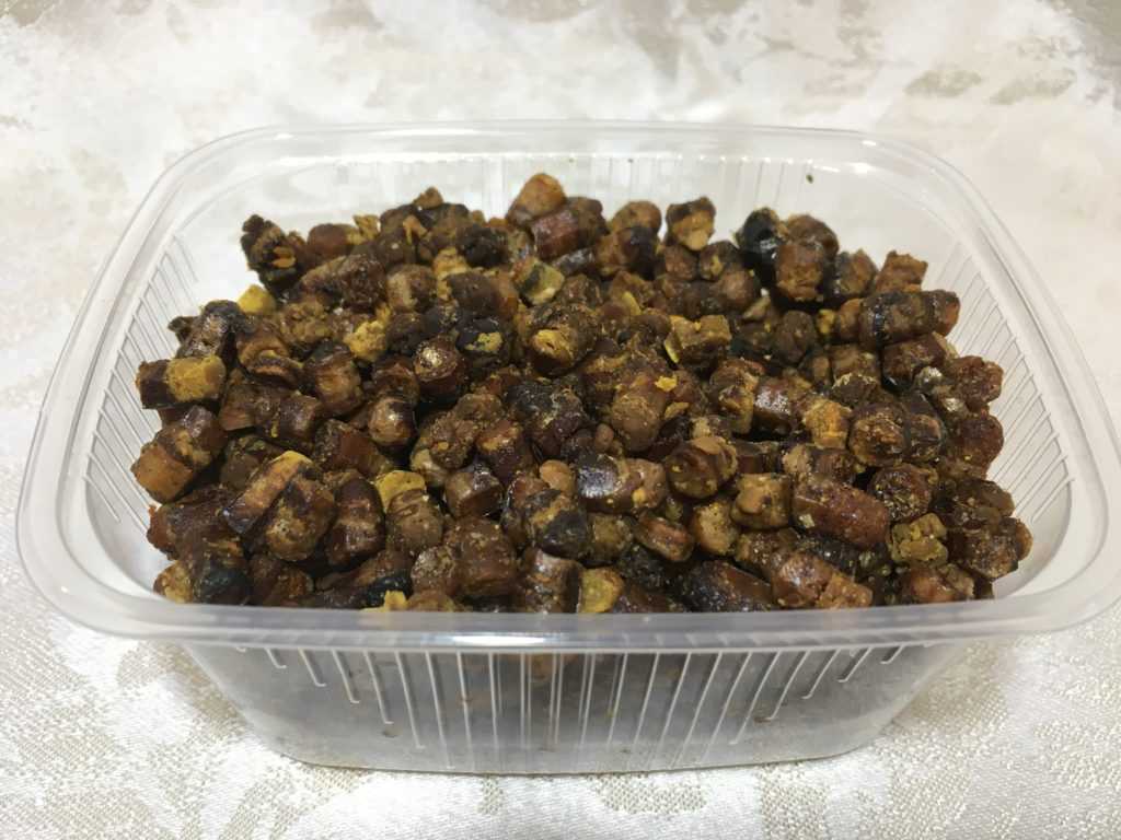 Перга в сотах обычно не продается, если только напрямую заказывать у пасечников. Гранулы и паста (перекрученные соты с частью меда) более доступный вариант.