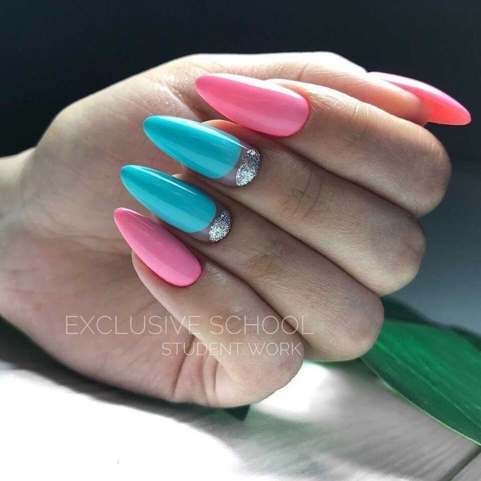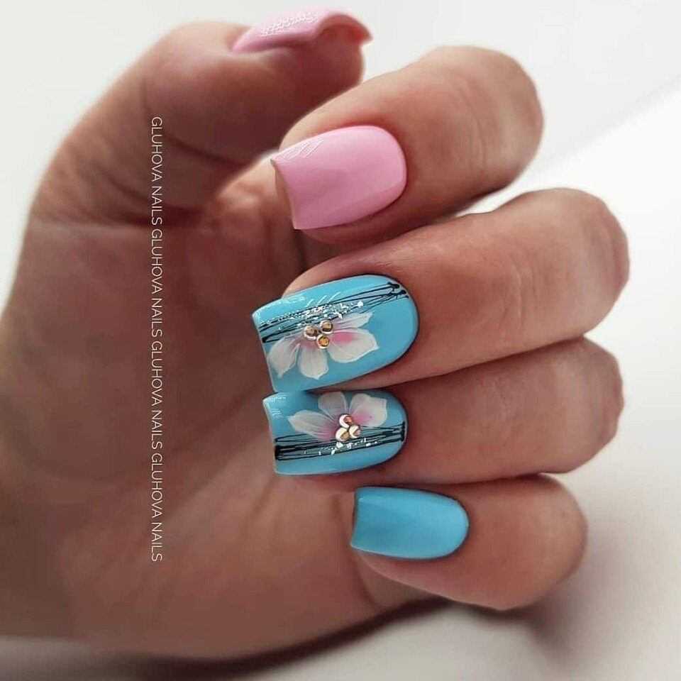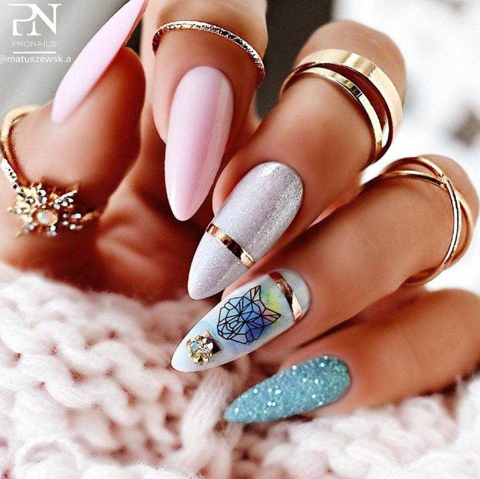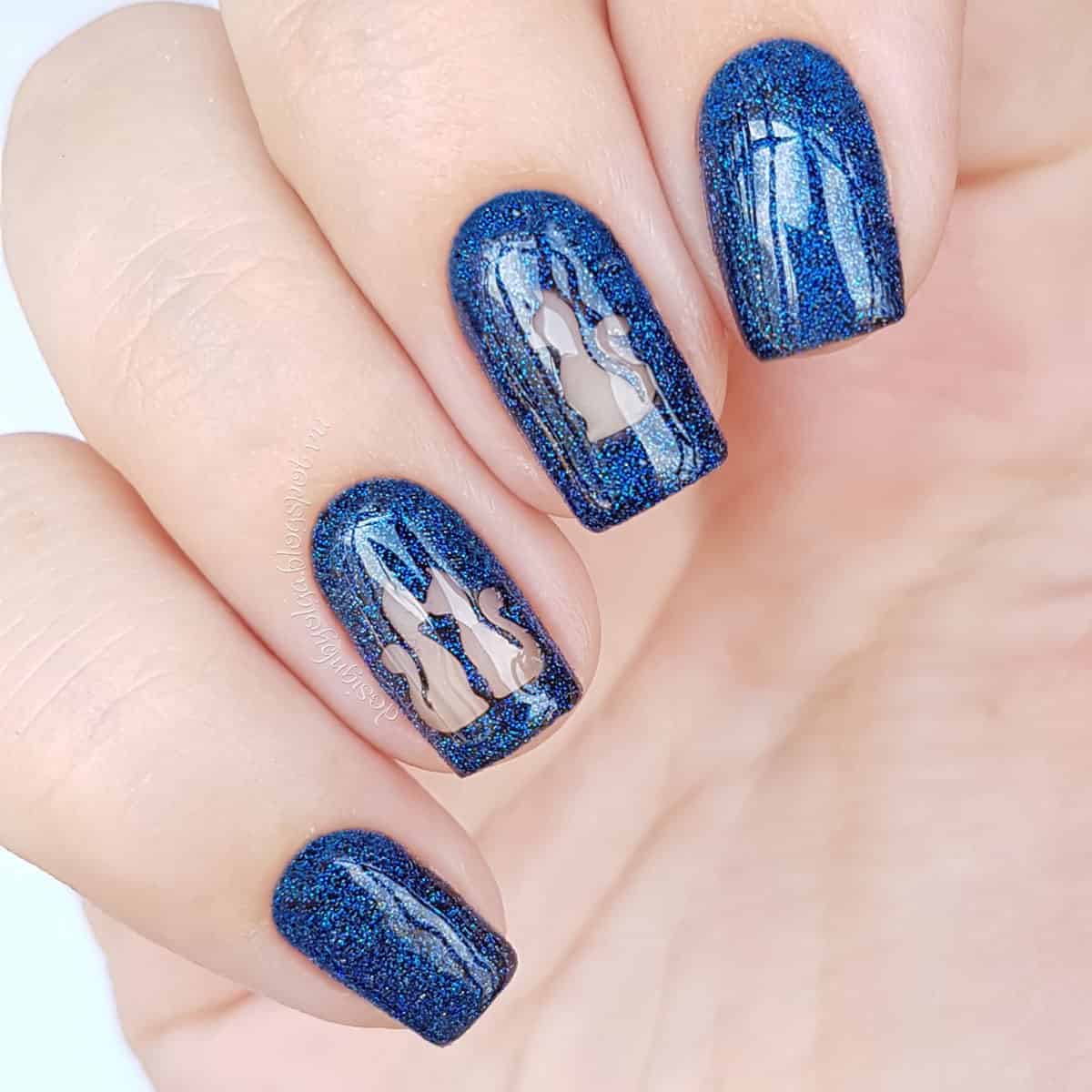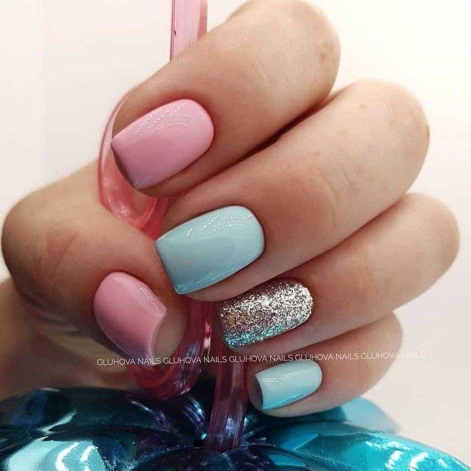Вы определённо не прогадаете, если сделаете синий маникюр. Холодный оттенок без дизайна будет смотреться самодостаточно и дорого. Украсить его можно глиттером или серебристой фольгой. Также прекрасной идеей станет сочетание с другими лаками:
