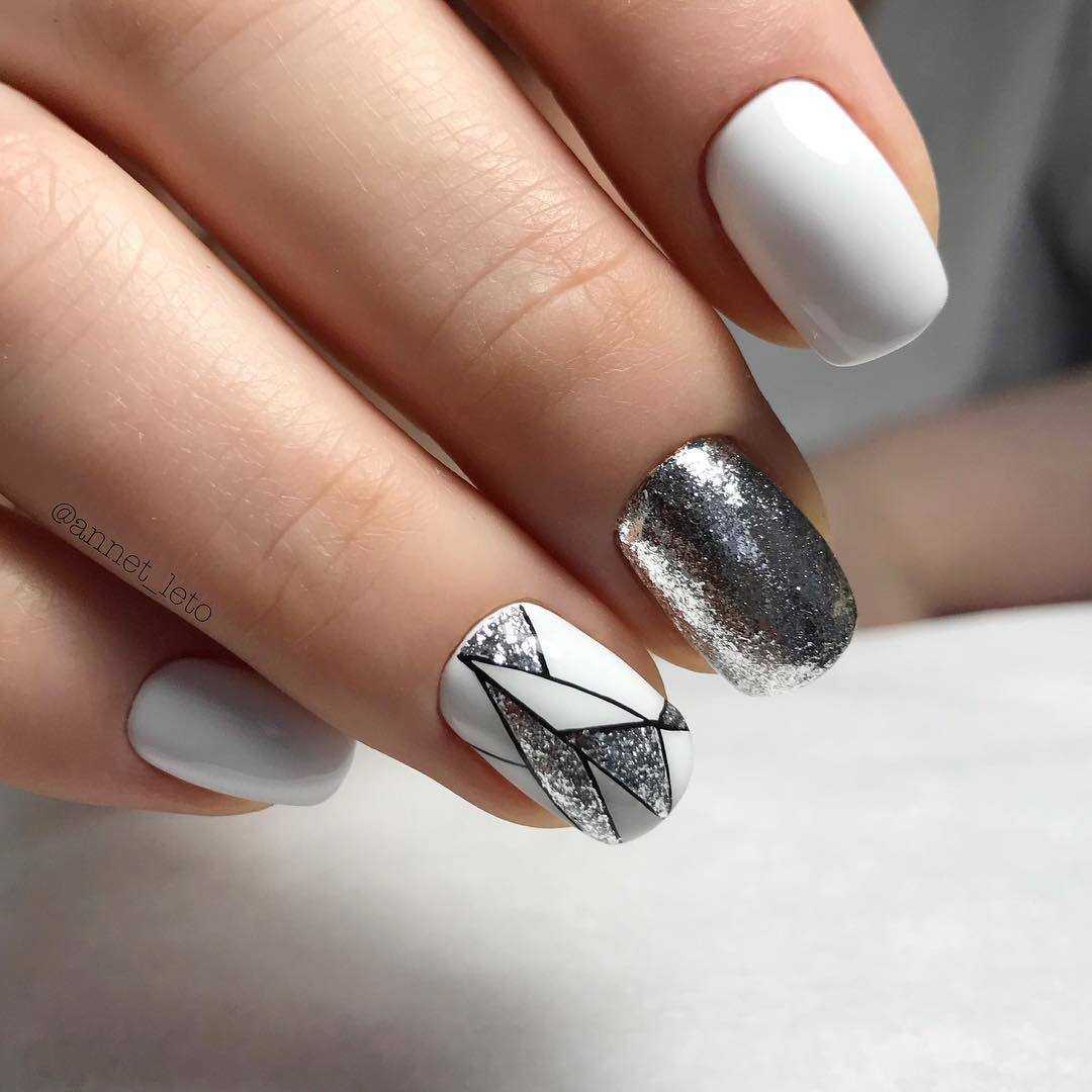 Ничто не сравнится с черным маникюром — он всегда будет на пике популярности. С ним даже короткие ногти выглядят восхитительно. Здесь в качестве украшений актуальны наклейки с геометрическими формами, абстракция, серебро и блестки