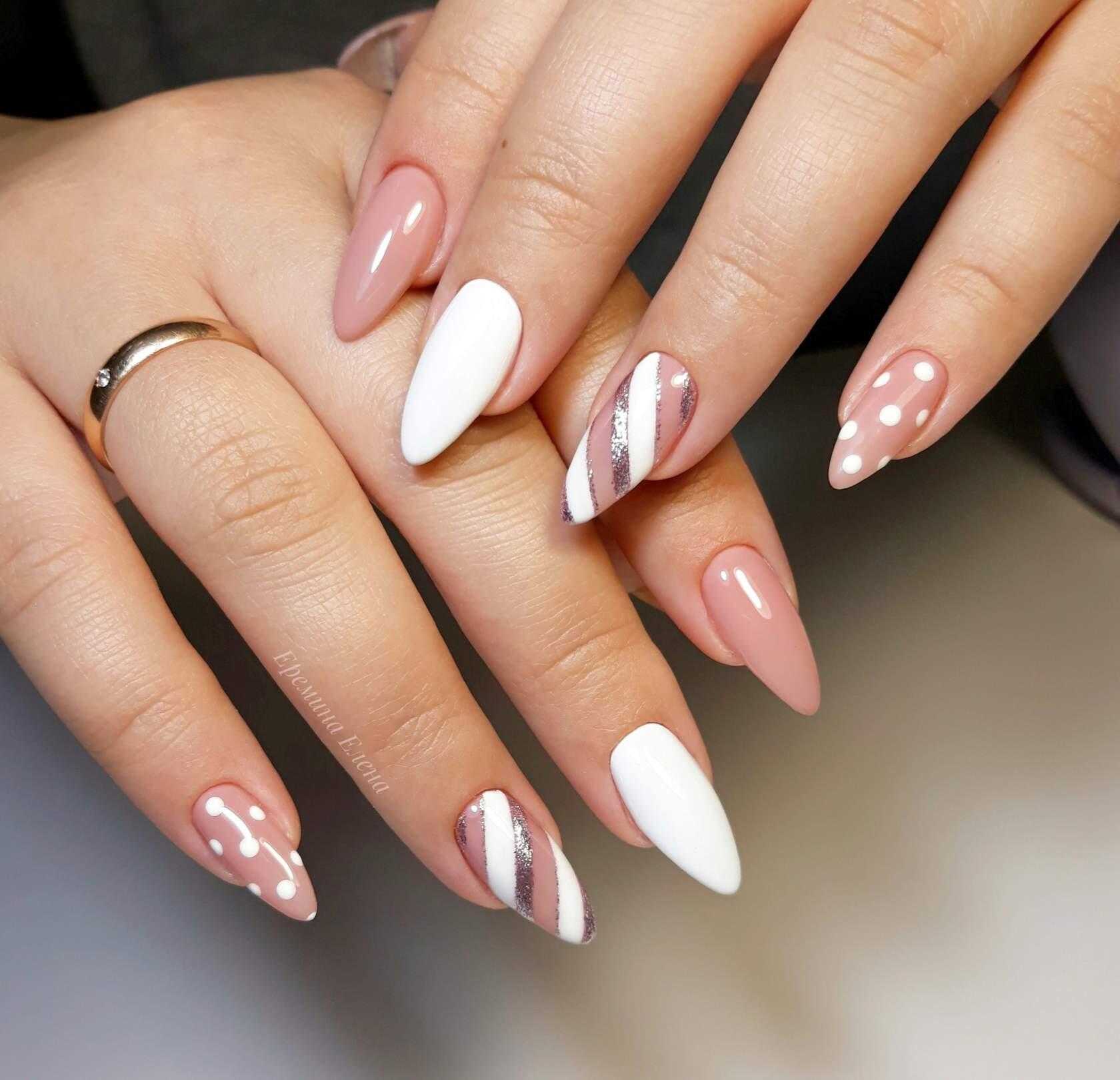 Если хочется чего-то нежного, подойдет бежевый лак. За счет универсальности его любят многие дамы — такой маникюр можно увидеть на руках как школьниц, так и взрослых женщин. Дополнить его можно горошком, геометрией, фольгой или наклейками. Каждый вариант будет смотреться интересно.
