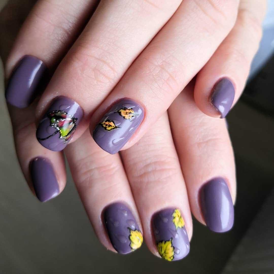 Несмотря на небольшую длину, можно сделать маникюр с листьями и на коротких ногтях. Главное — это правильно подобрать их размер и количество, чтобы они гармонично смотрелись.