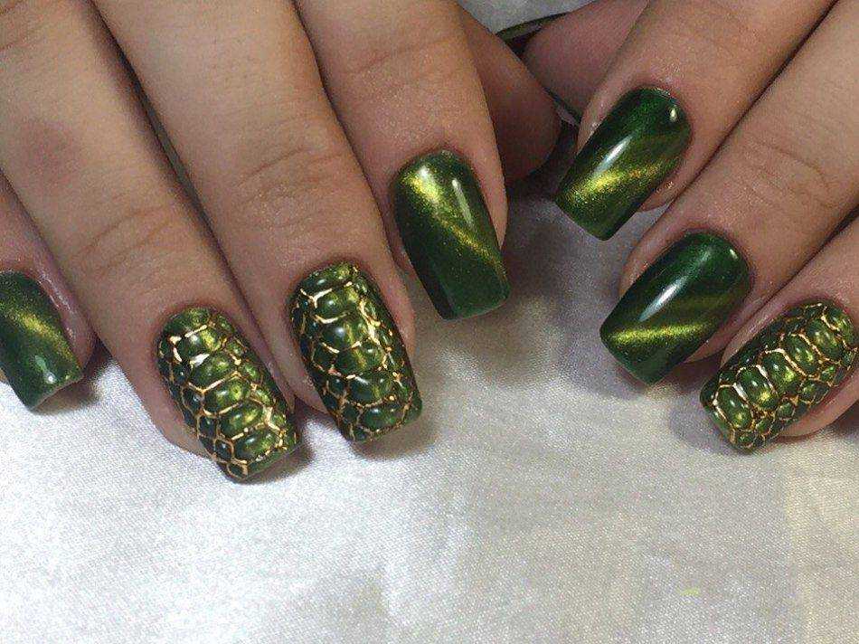 Как сделать маникюр рептилия еще более изысканным и роскошным? Этот утонченный дизайн нужно аккуратно комбинировать с другими техниками, чтобы в итоге это не выглядело безвкусицей. Вашему вниманию мы представляем несколько вариантов оригинального покрытия.