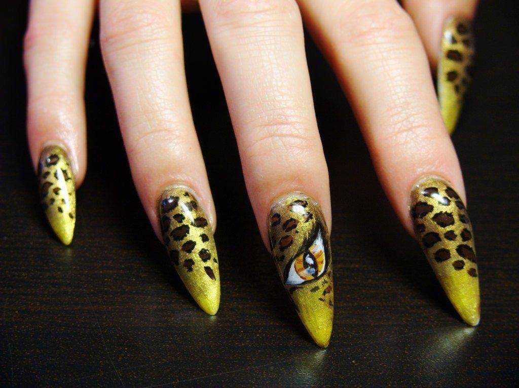 Пожалуй, самым нейтральным дизайном в данном случае будет глаз змеи. Его рисуют вручную, используя кисти и набор красок. Для достижения натуральности, мастер всегда тщательно прорисовывает все детали. В домашних условиях повторить его практически невозможно, поэтому лучше записаться в хороший салон.
