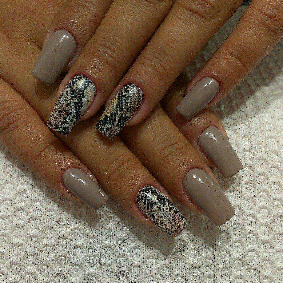 Экспериментальным путем многие девушки обнаружили, что змея на ногтях успешно комбинируется с актуальной нюдовой палитрой лаков. Для того чтобы добиться трендового дизайна, можно просто аккуратно нанести полупрозрачное бежевое покрытие на ноготки и украсить его модным рисунком. На таком фоне выразительно будет смотреться классическое черное изображение.