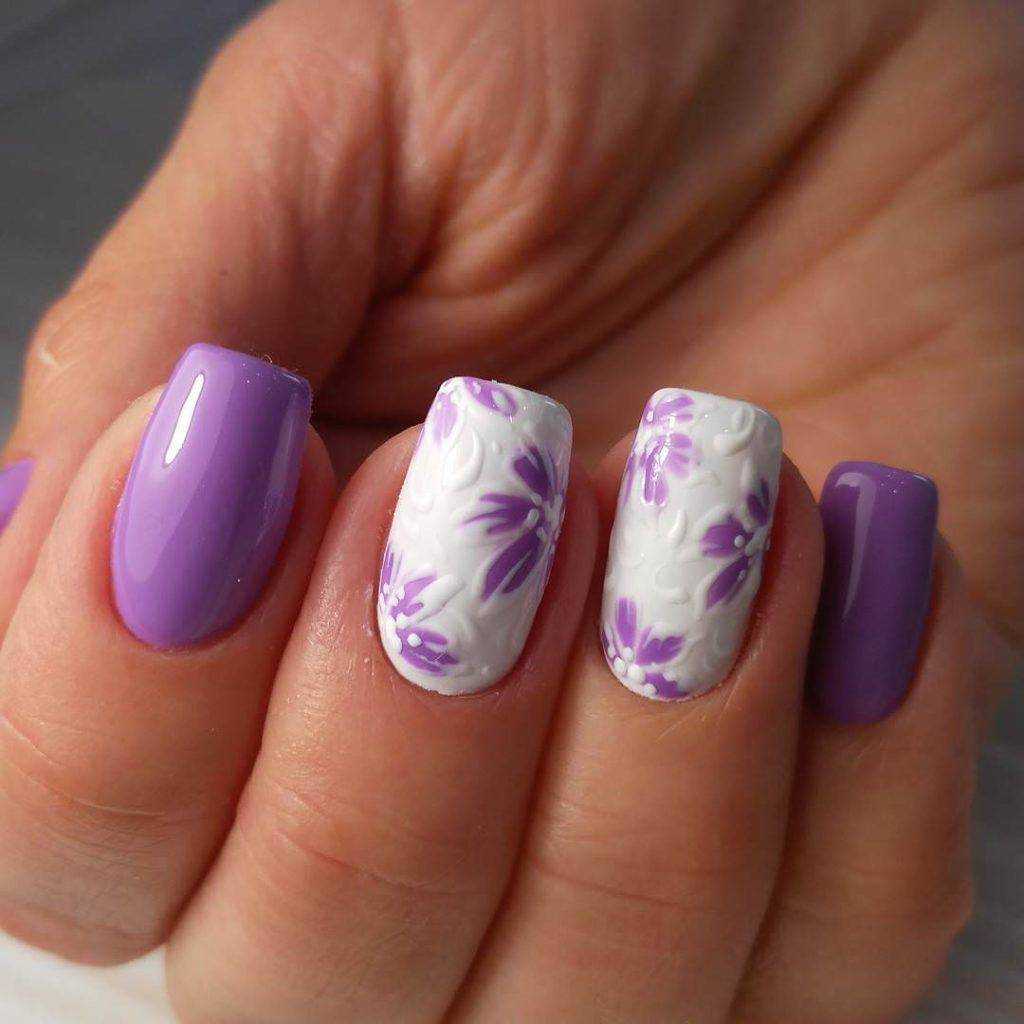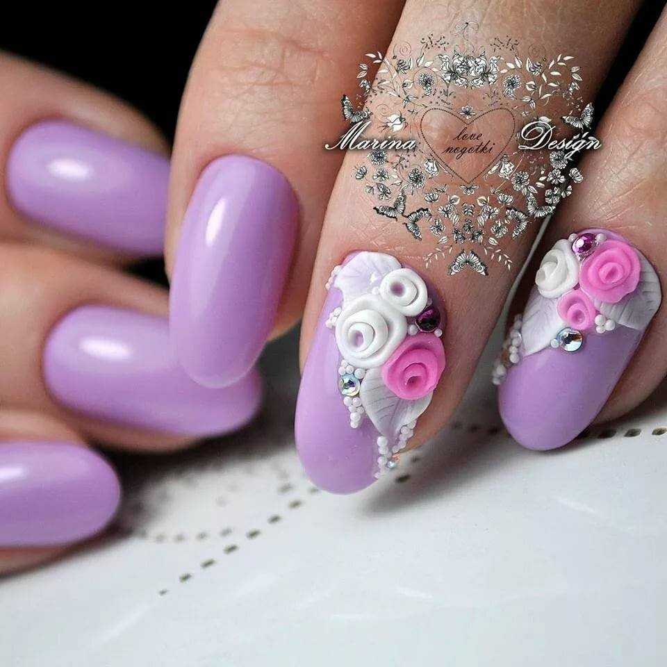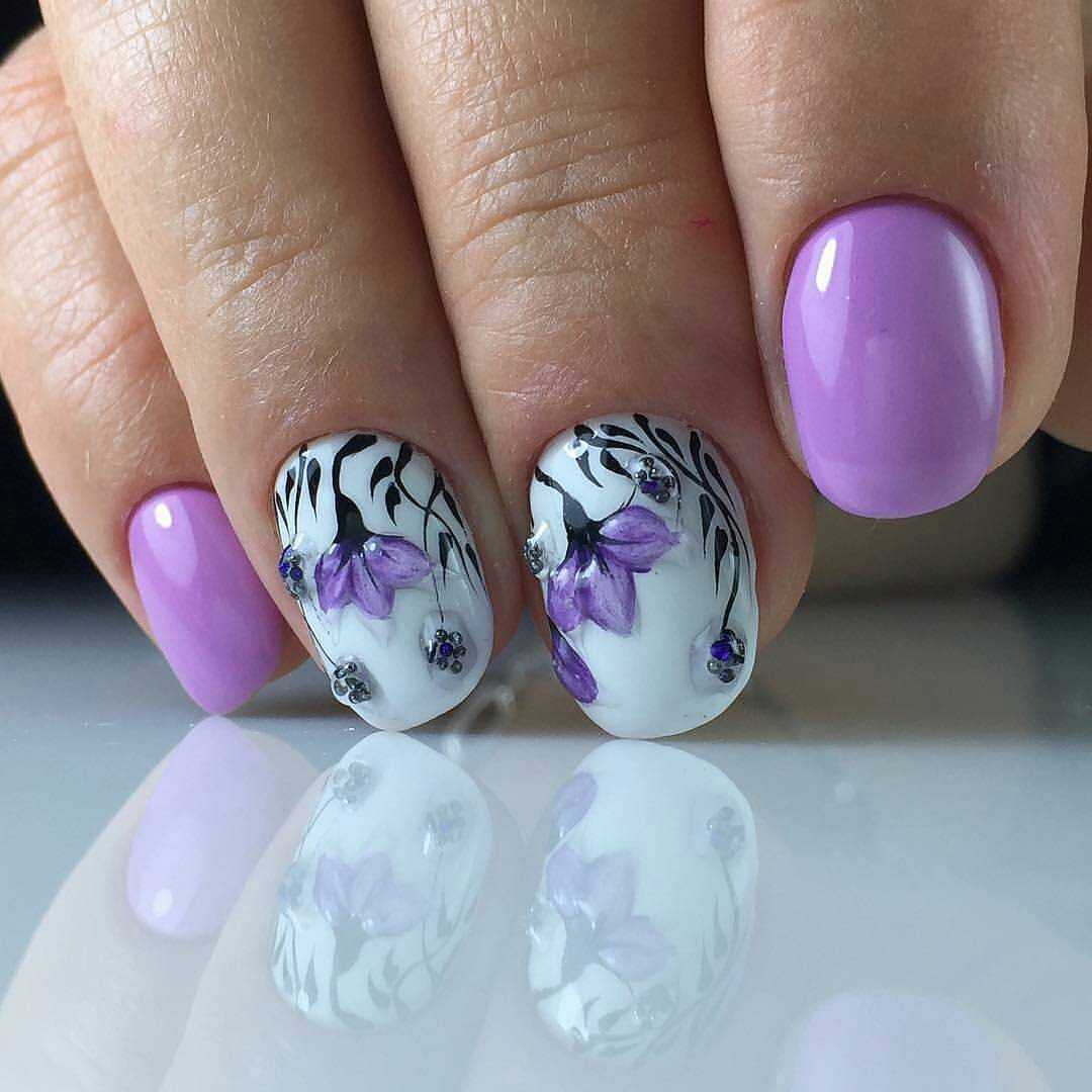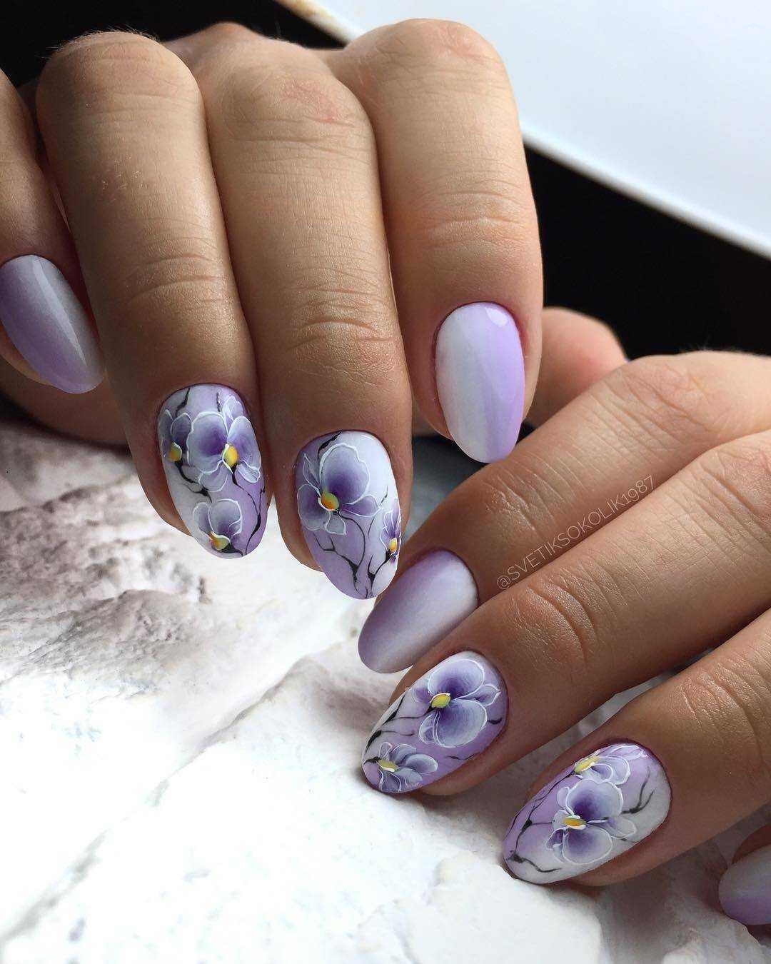 Фиолетовый маникюр с цветами 2020: актуальные идеи дизайна ногтей