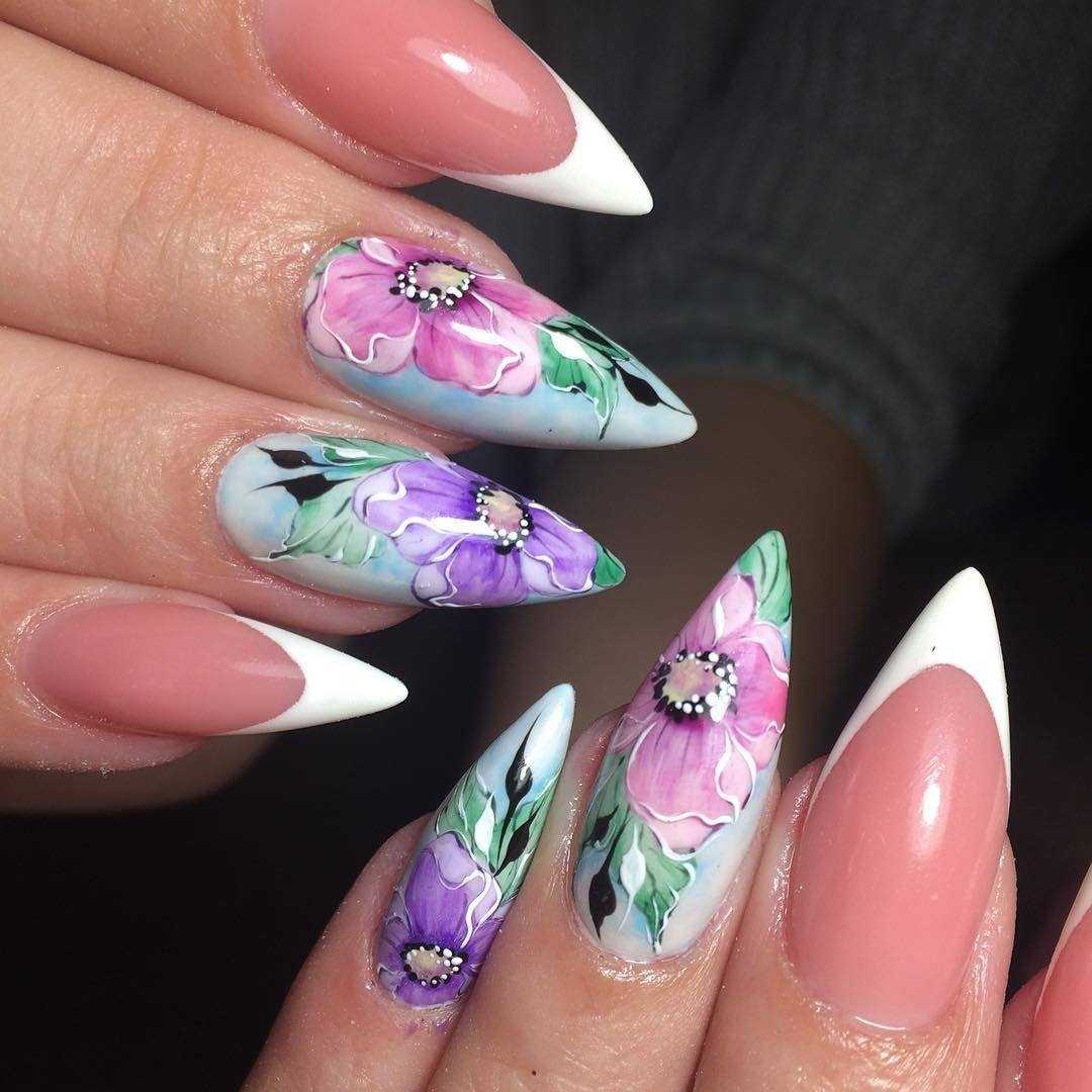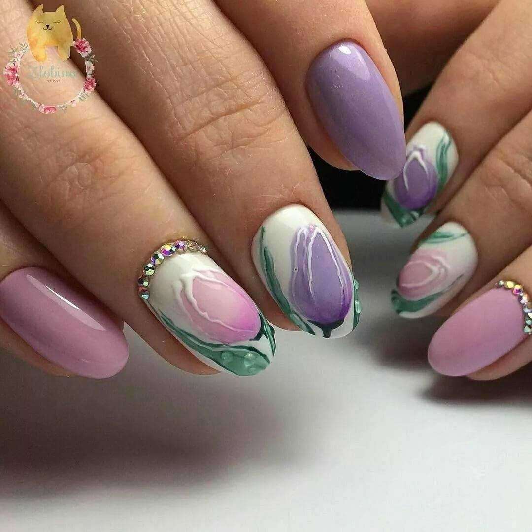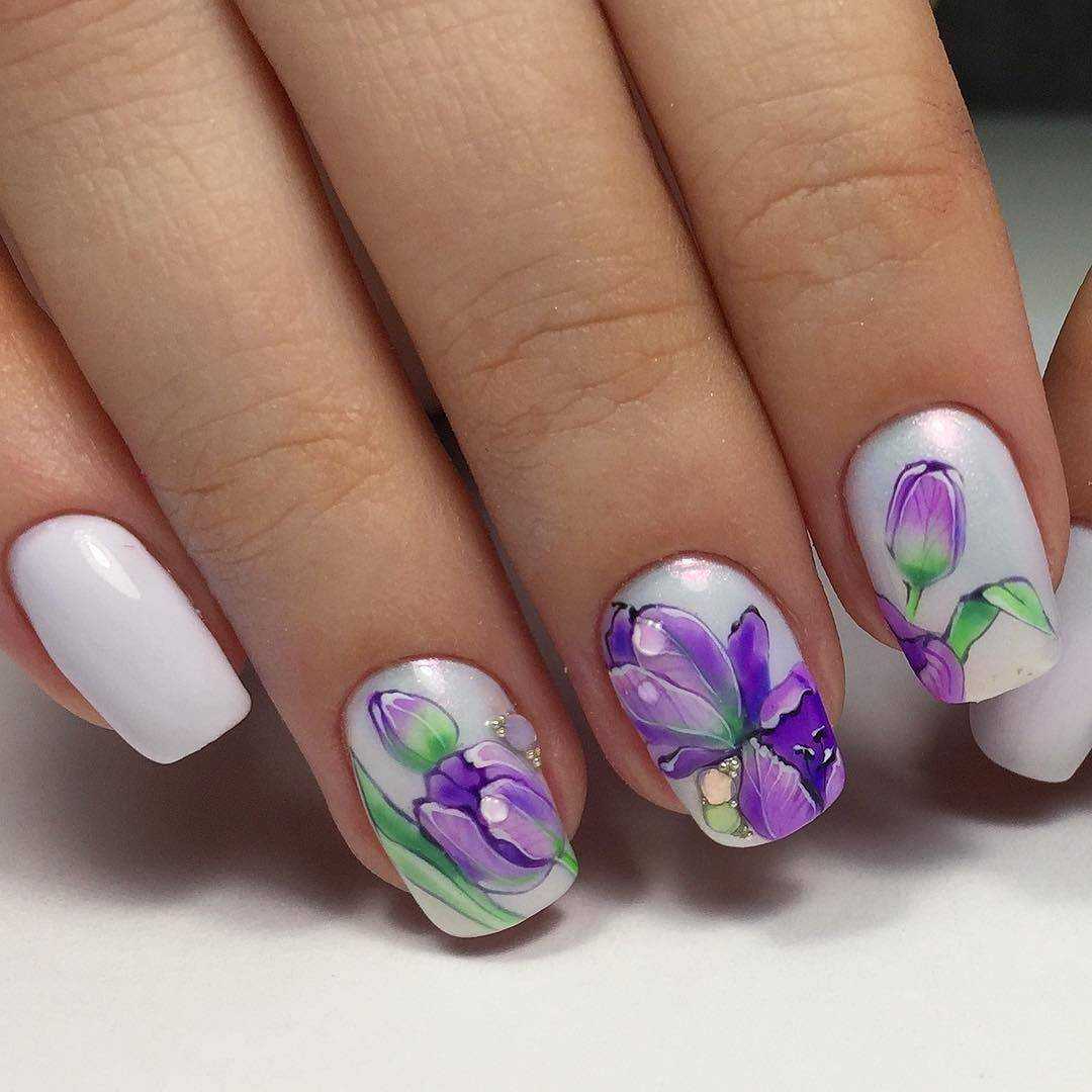 Фиолетовый маникюр с цветами 2020: актуальные идеи дизайна ногтей