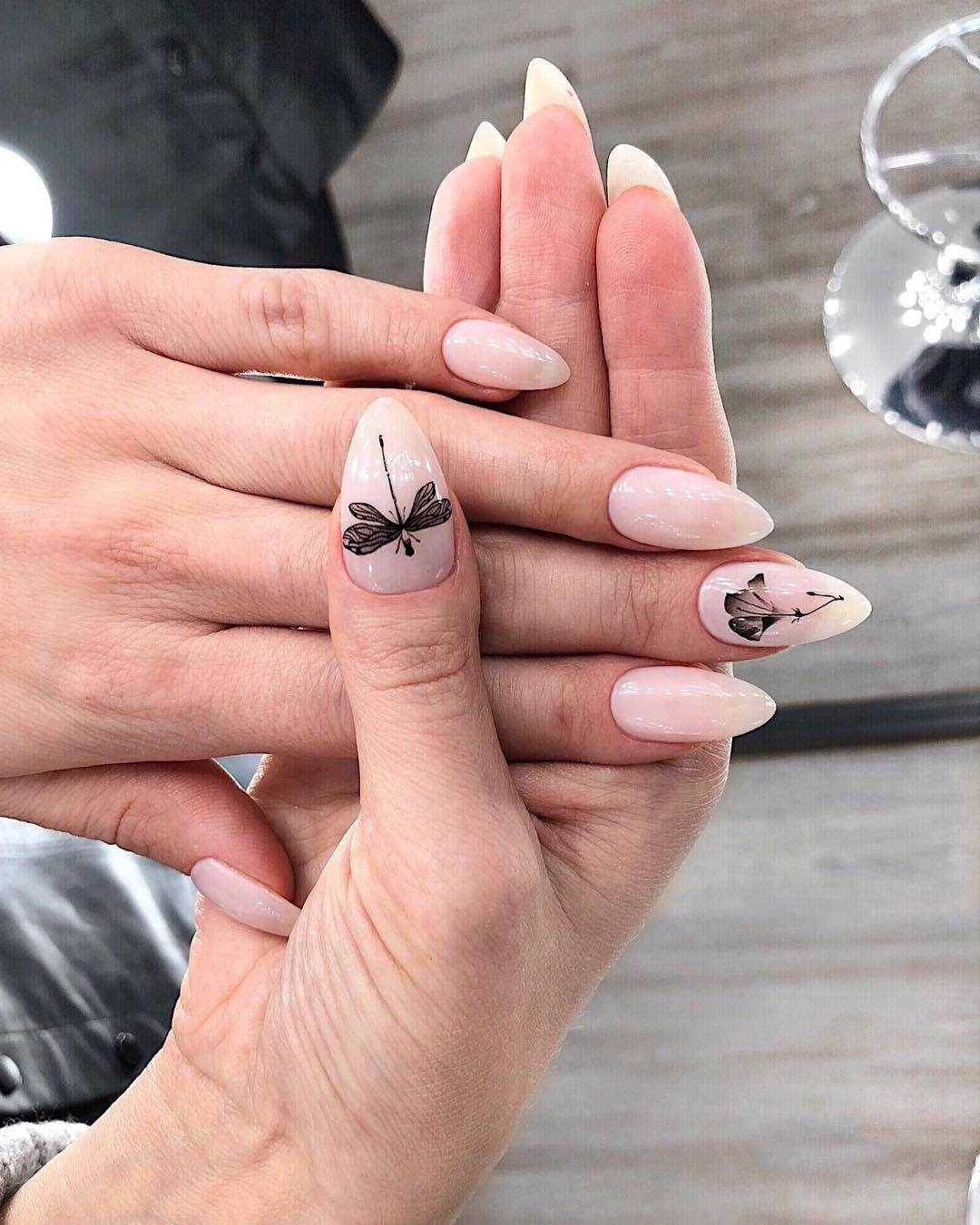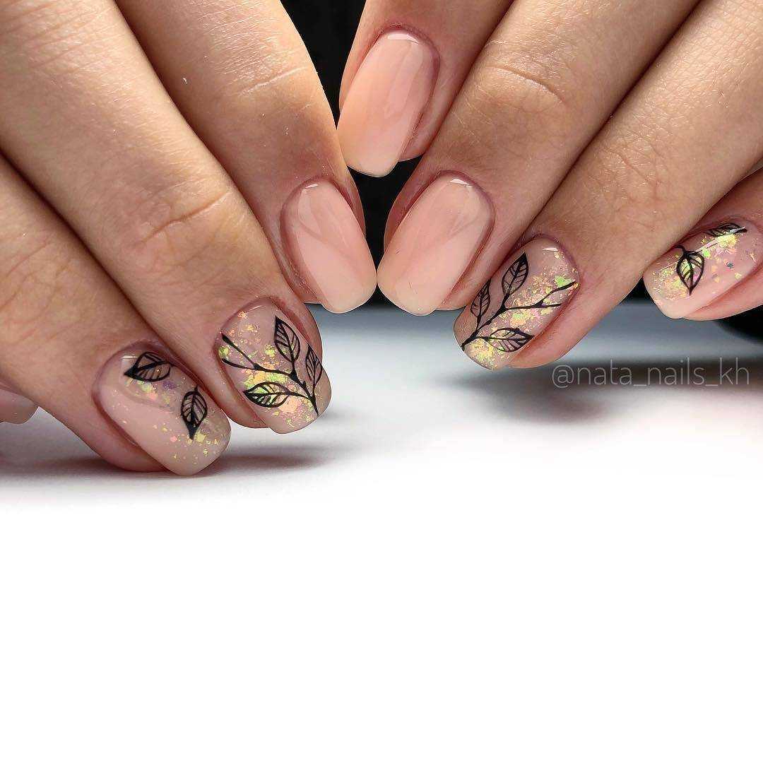 - Скелетированные листья. Почти прозрачные листочки, в которых четко видны только прожилки. Благодаря такому элементу удастся сделать неординарный маникюр.