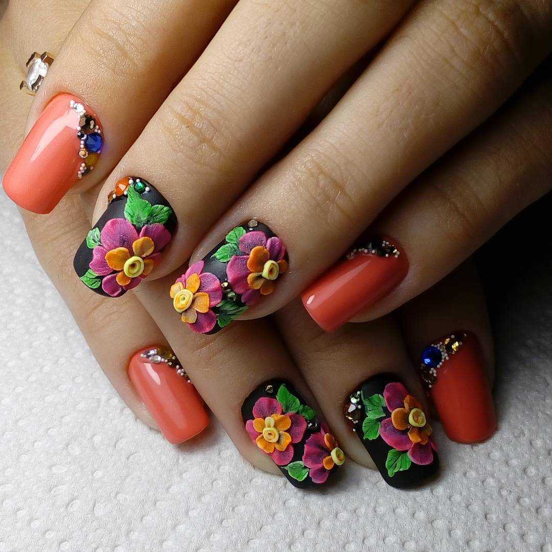 Маникюр с цветами – универсальное решение для женщин любого возраста. В зависимости от тематики рисунка маникюр может выглядеть нежно и воздушно, или, наоборот, вызывающе и эффектно. Предлагаем большую фото-подборку идей маникюра с цветами, которые вы можете использовать для собственных нейл-артов.