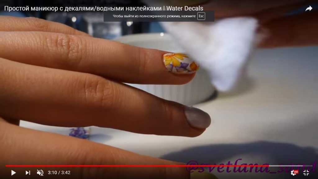 - Наклейки на водной основе для ногтей отправляем в воду, снимаем с подложки.