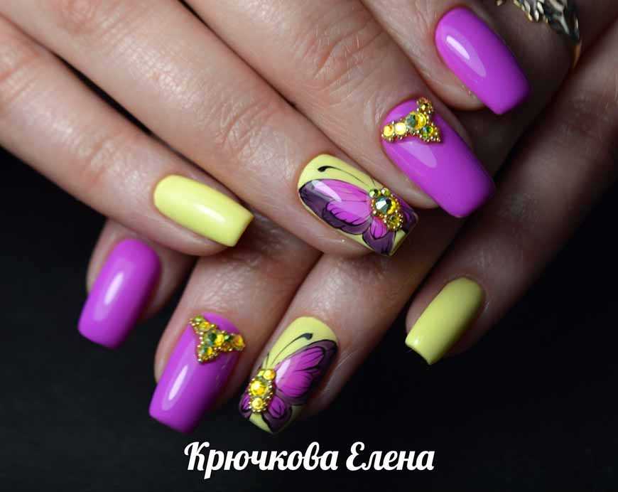 Все мы очень любим фотографировать и рисовать бабочек. Их очаровательные крылышки раскрашены в самые неожиданные цветовые сочетания. А их форма настолько разнообразна, что издали эти пестрые лепестки напоминают яркие экзотические соцветия. Но и такую красоту можно перенести на ногти, что сделает их просто изысканными.