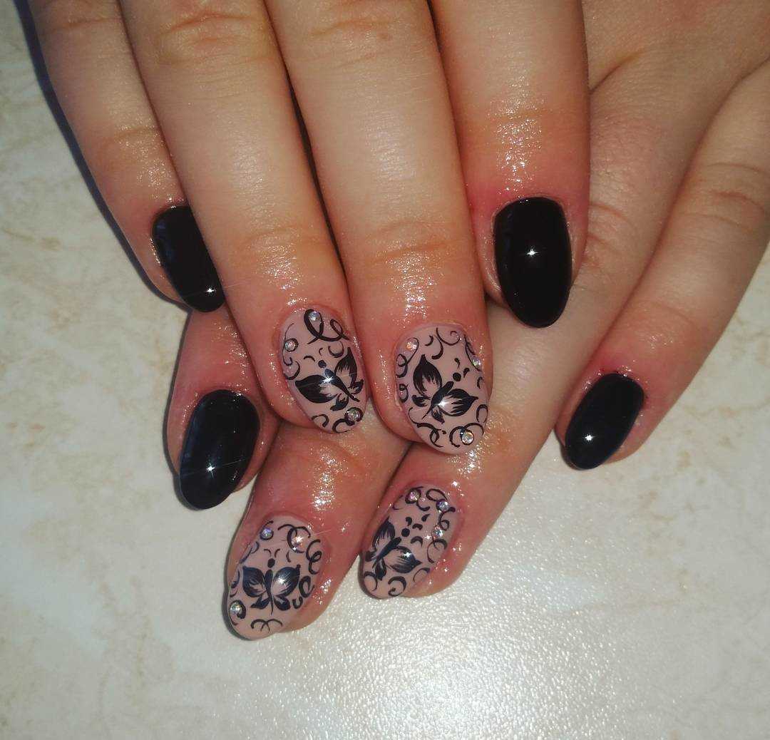 Современные тенденции стирают все границы, поэтому черный, благодаря своей неоднозначности, может быть вписан в офисные будни. Тут главное не увлекаться «мишурой» – уместны тонкие графические линии, френч. Неброские надписи, умелые манипуляции нюдовыми оттенками, превратится в лаконичный офисный.