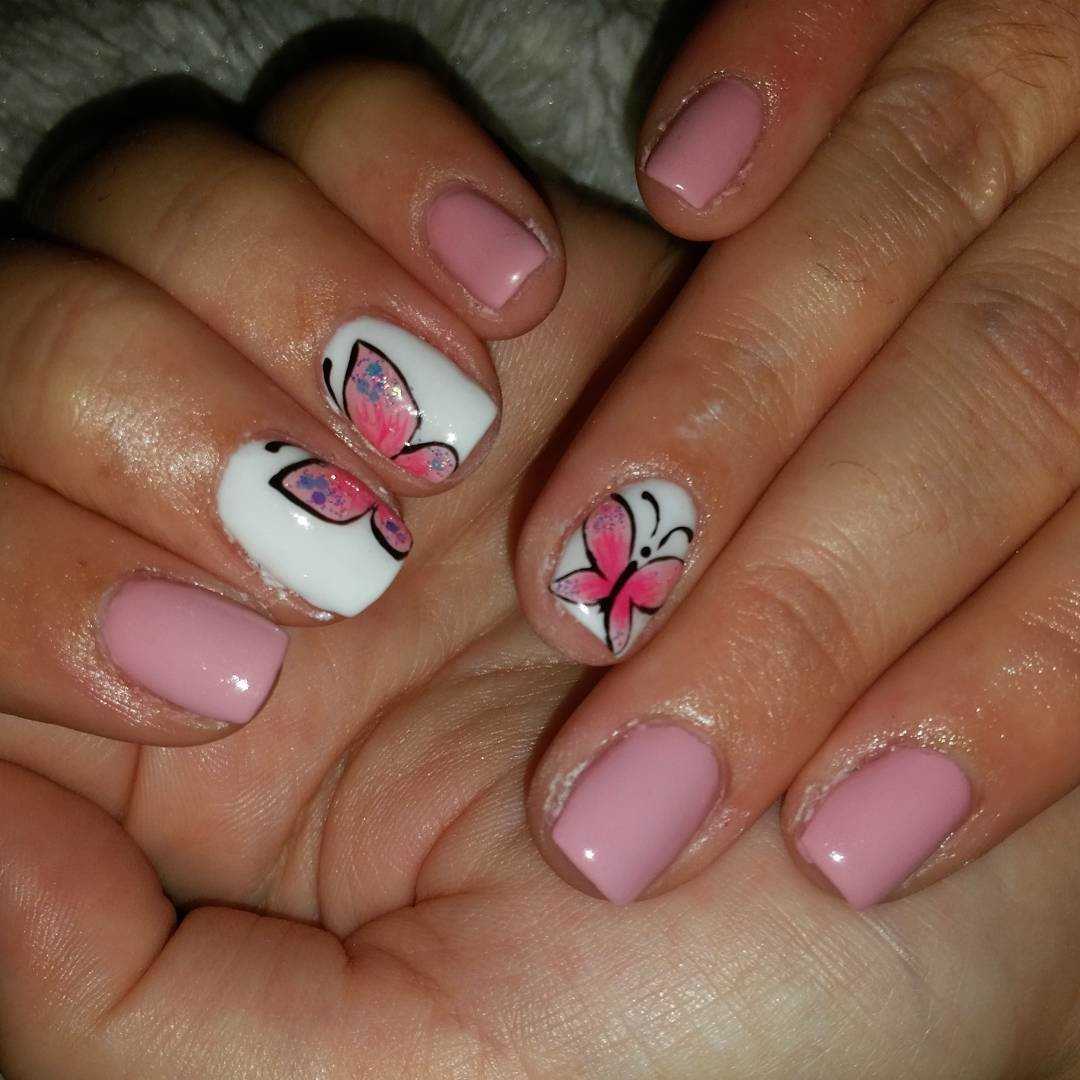 Короткий маникюр с рисунком бабочки: новинки дизайна 2022-2023