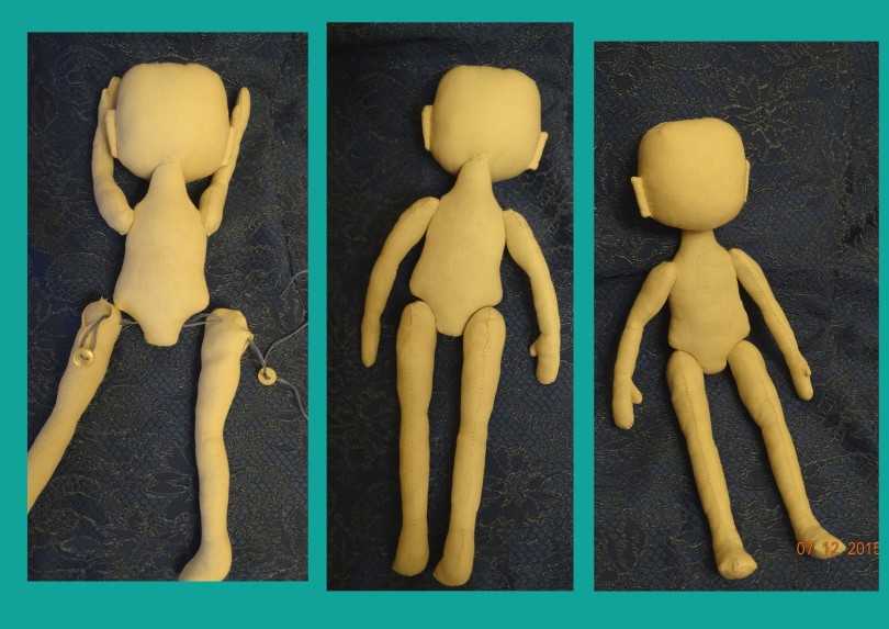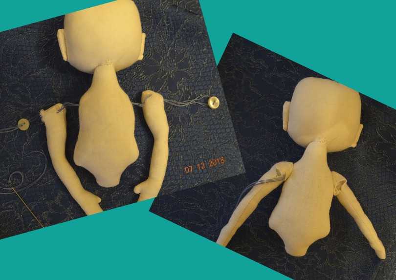 Скрепите все части вместе. Получилось готовое тело куклы.