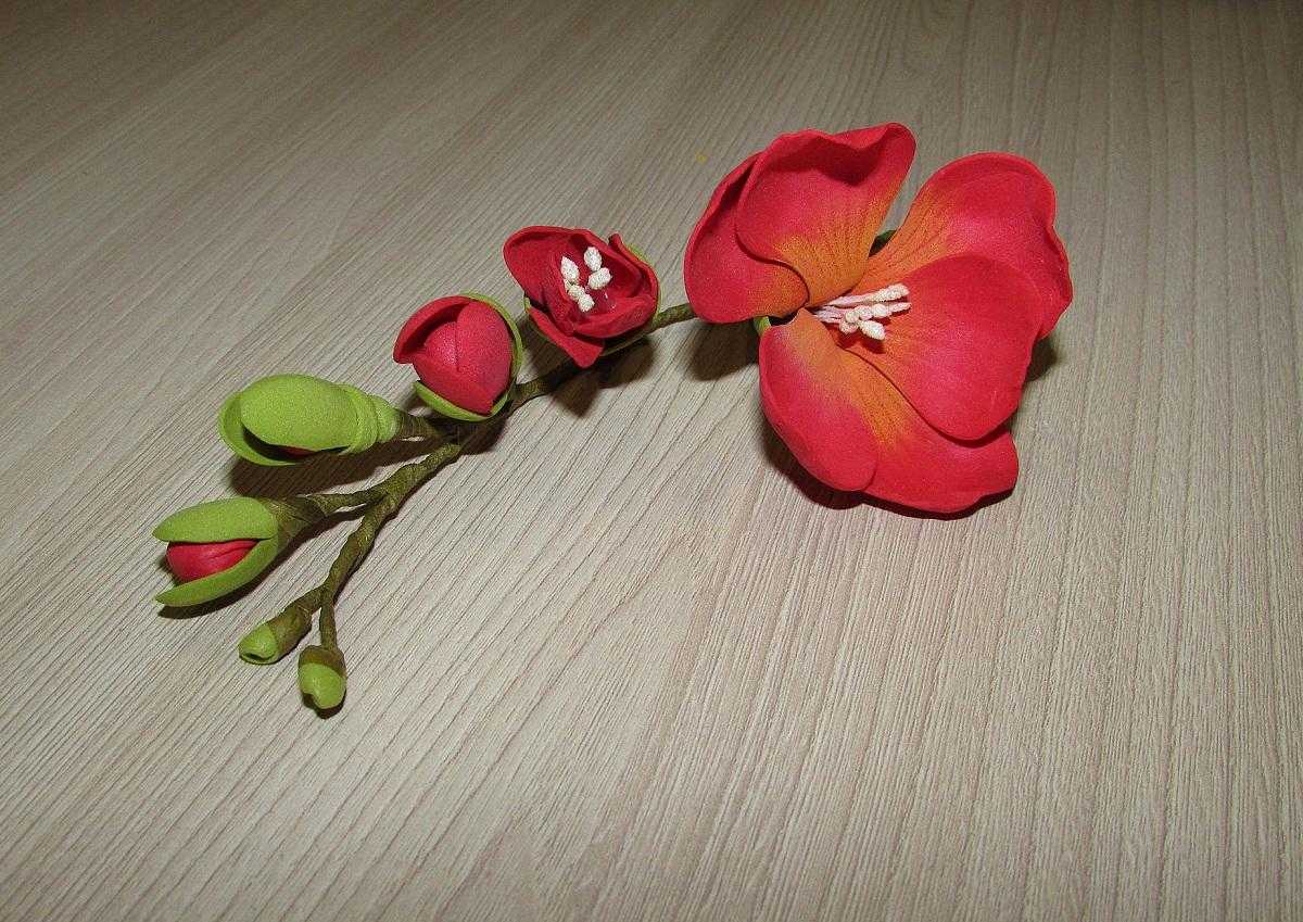 Фоамиран – это мягкая вспененная резина, которая в некоторой степени напоминает замшу. Главная особенность материала проявляется при воздействии на него горячим предметом: фоамиран принимает нужную вам форму и так застывает. В незначительной степени на него может повлиять даже тепло ваших рук, а чтобы увеличить степень изогнутости в работе с материалом пользуются утюгом или щипцами.