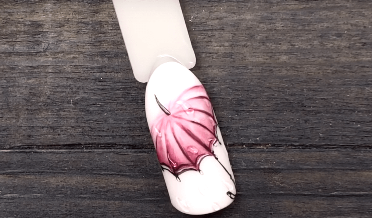 Перед тем, как приступить к рисованию капель кистью, нужно сначала покрыть ногти гель-лаком, выбранного вами цвета и хорошенько их просушить (количество слоёв гель-лака зависит от его густоты, обычно достаточно двух).