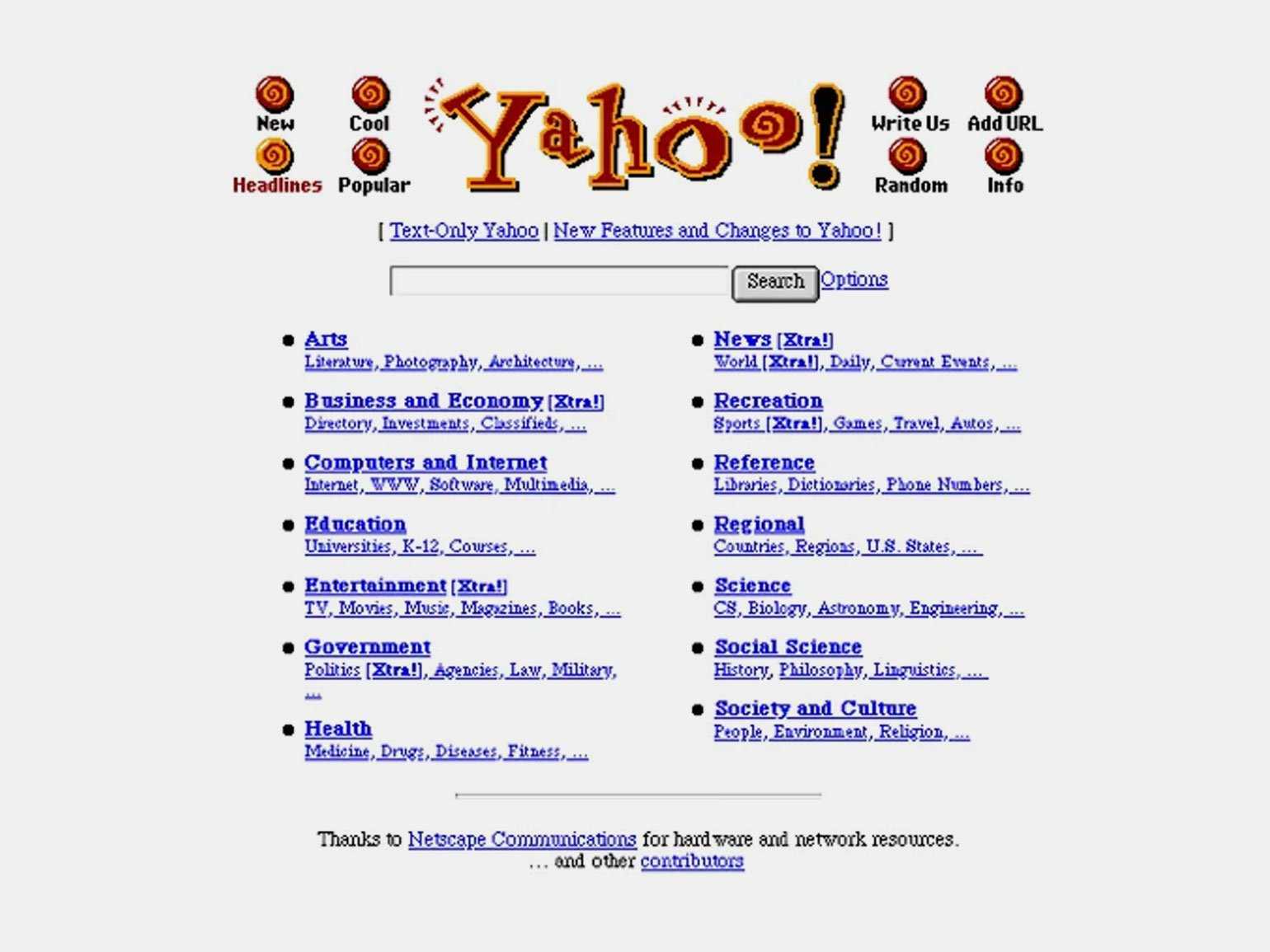 Первый интерфейс Yahoo. 1995 годИзображение: Yahoo