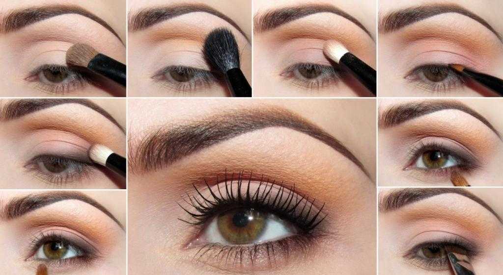 На все подвижное веко нанести матовые тени. Для теплого образа использовать светло-коричневый или бежевый цвет. Для создания макияжа в холодных тонах отлично подойдут нежно-розовый или дымчатый оттенок.