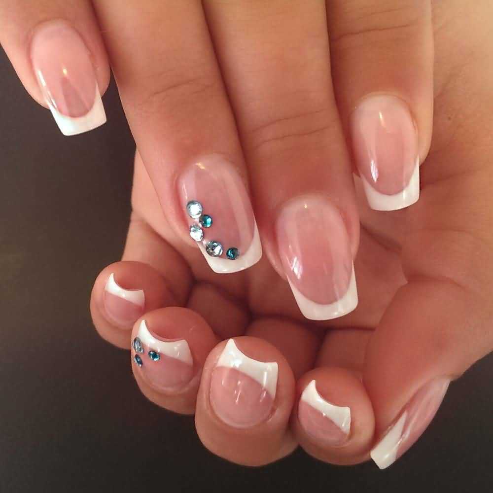 - отросшую ногтевую зону декорируют стразами – обеспечиваются маскировка дефектов, обновление дизайна;