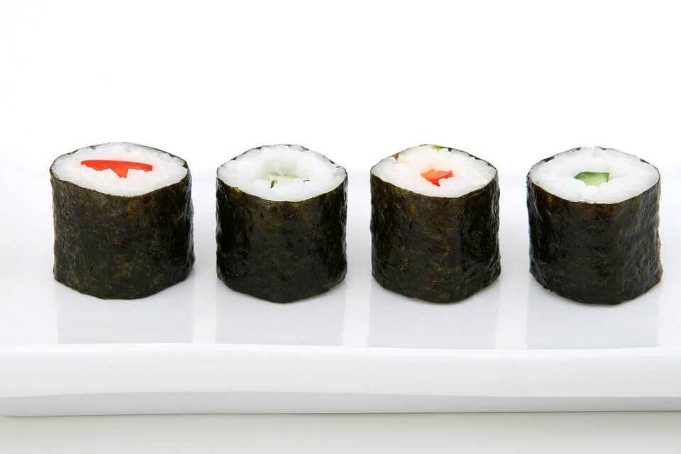Благодаря добавлению рыбы организм насыщается микроэлементами и жирными кислотами. Водоросли содержат протеины, витамины и железо, а рис очень питателен – во время диеты не ощущается мучительный голод.