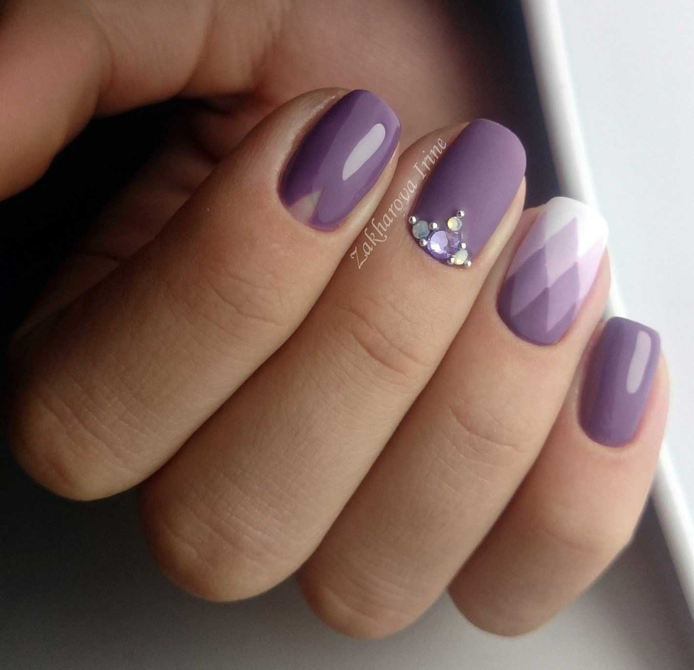 Сиреневый маникюр со стразами 2020: стильный декор на каждый день