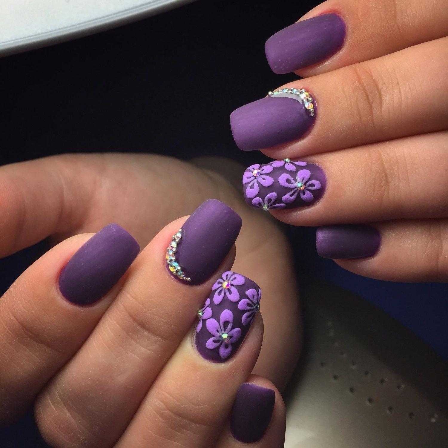 Матовый нейл-дизайн со стразами в сиреневых тонах
