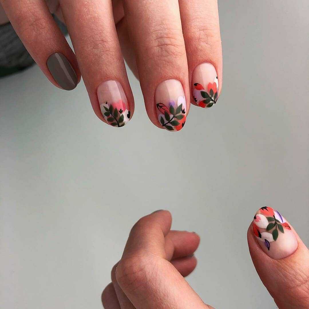 Также остается на пике популярности. Розы и некоторые другие цветы будут смотреться на ногтях не только актуально, но и очень красиво. При этом цветы могут быть как нарисованы, так и наклеены на ноготь.