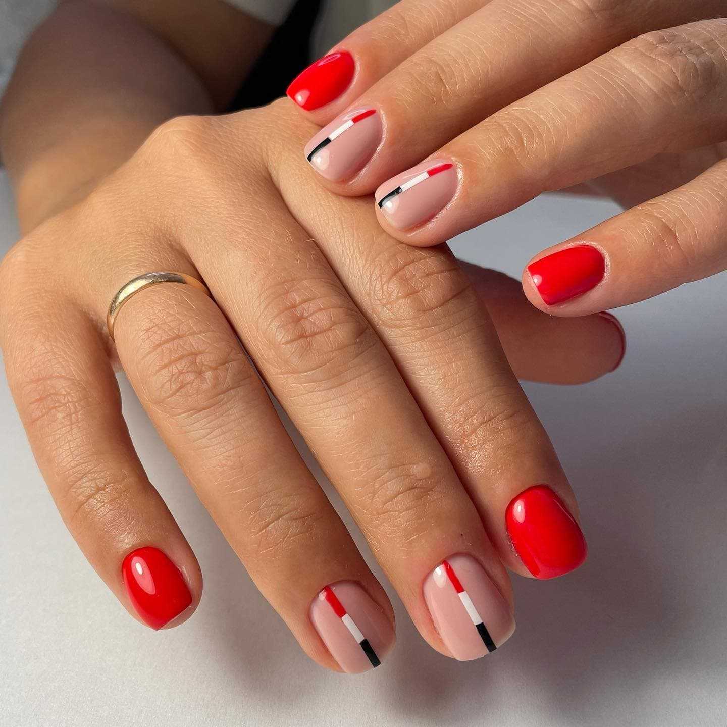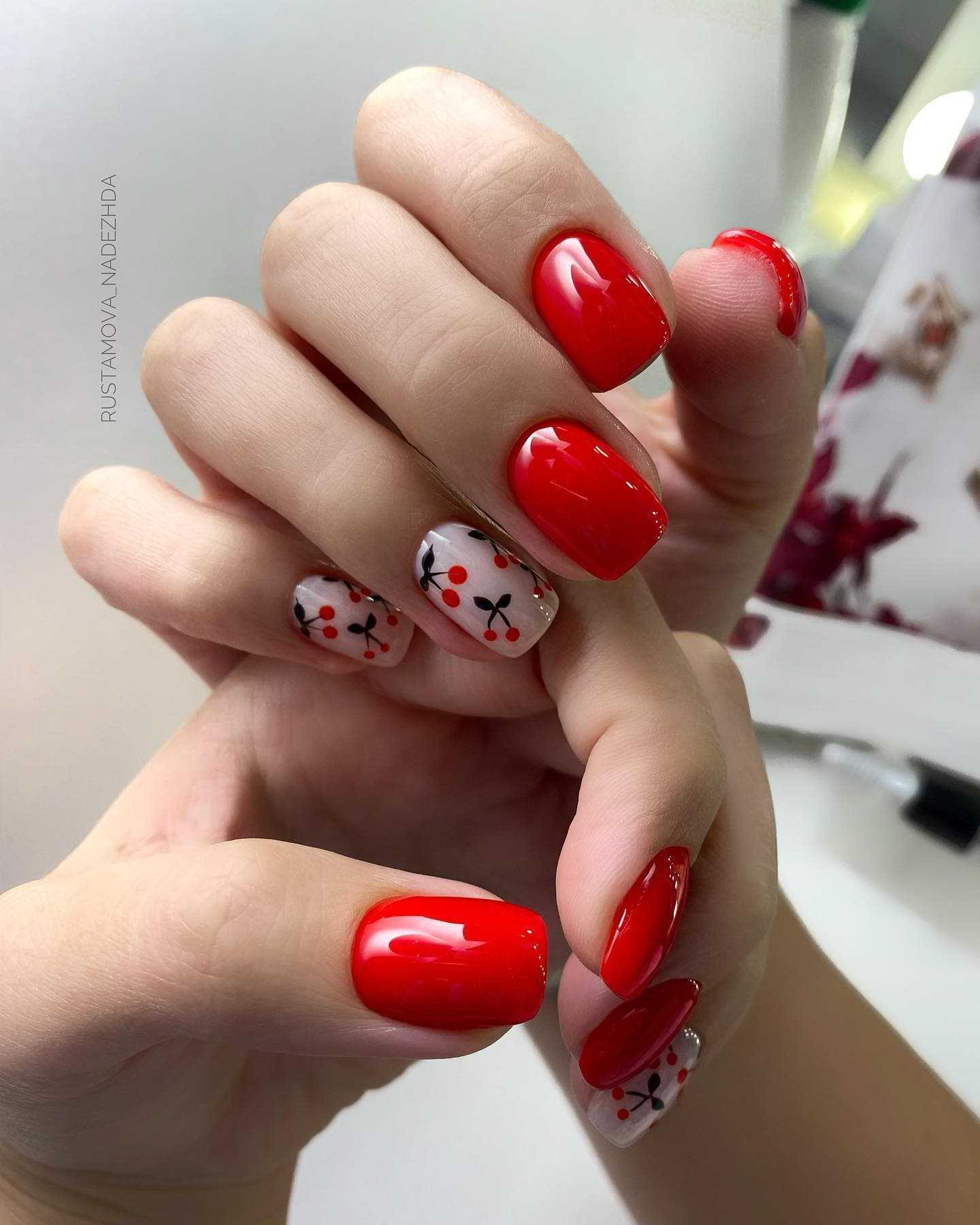 Летний маникюр с элементами красного цвета сделает ваш маникюр насыщенным, стильным и модным в летнее время.