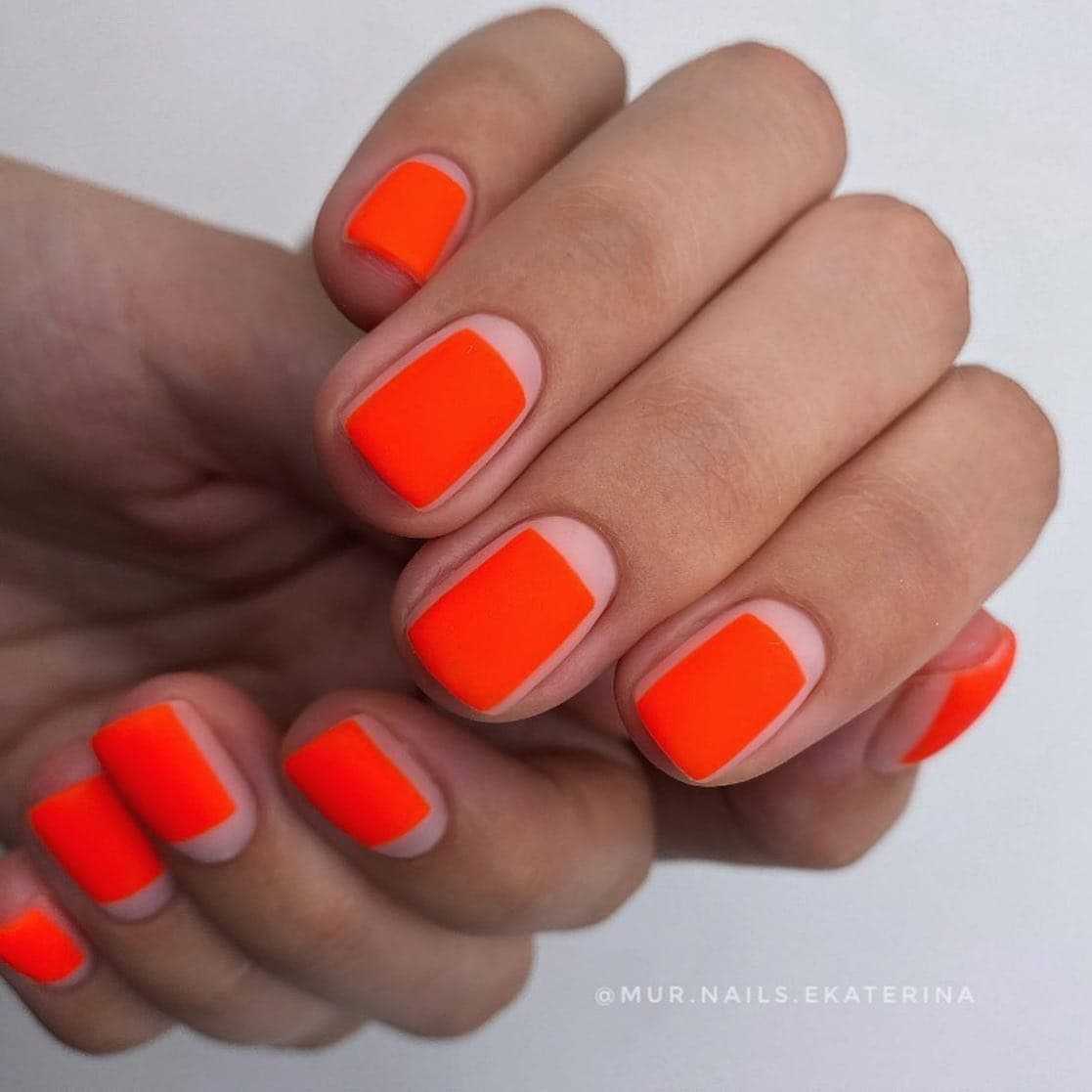 Неоновый красный маникюр вобрал сразу несколько современных эпатажных трендов.
