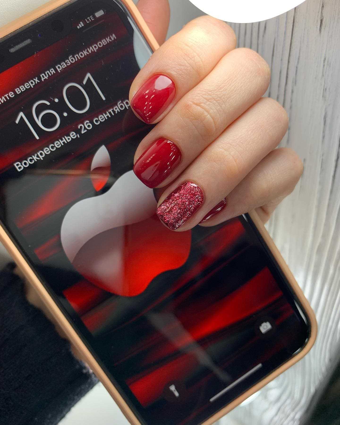 Красивый красный маникюр осень