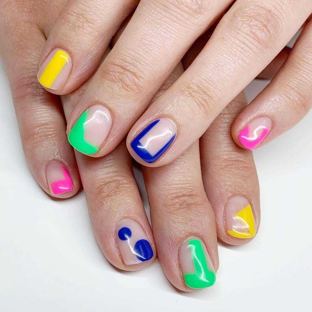 Эти цветные очертания напоминают элементы игры в тетрис, но теперь на ваших ноготках.