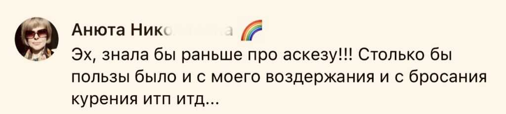 Один из частых вопросов, что же делать, если желание исполнилось до окончания аскезы? Конечно же, ответ однозначный, выполнить свои обязательства. По сути, вам Вселенная дала кредит доверия, она поняла, что вы – молодец и выполняете свои обязательства и дала вам небольшой аванс и выполнила ваше желание раньше. Если вы в этот момент вашу аскезу нарушите и решите что всё – договор выполнен, то следующая аскеза у вас не сработает. Поэтому, если вы планируете эту технику выполнять и дальше я вам рекомендую, выполнить эту аскезу до конца. У меня так и получилось, Вселенная выполнила свою часть работы, выполнила моё желание на девятнадцатый день и я могла бы, в теории, уже не париться и есть всё, что хочу, но я знаю, что ни в бизнесе, не в отношениях, ни в повседневной жизни так не работает. Если вы договорились, что вы строите дом и вам за это заплатят миллион – но вы взяли деньги вперед, а дом не достроили, то, вряд ли, ваш заказчик будет доволен.