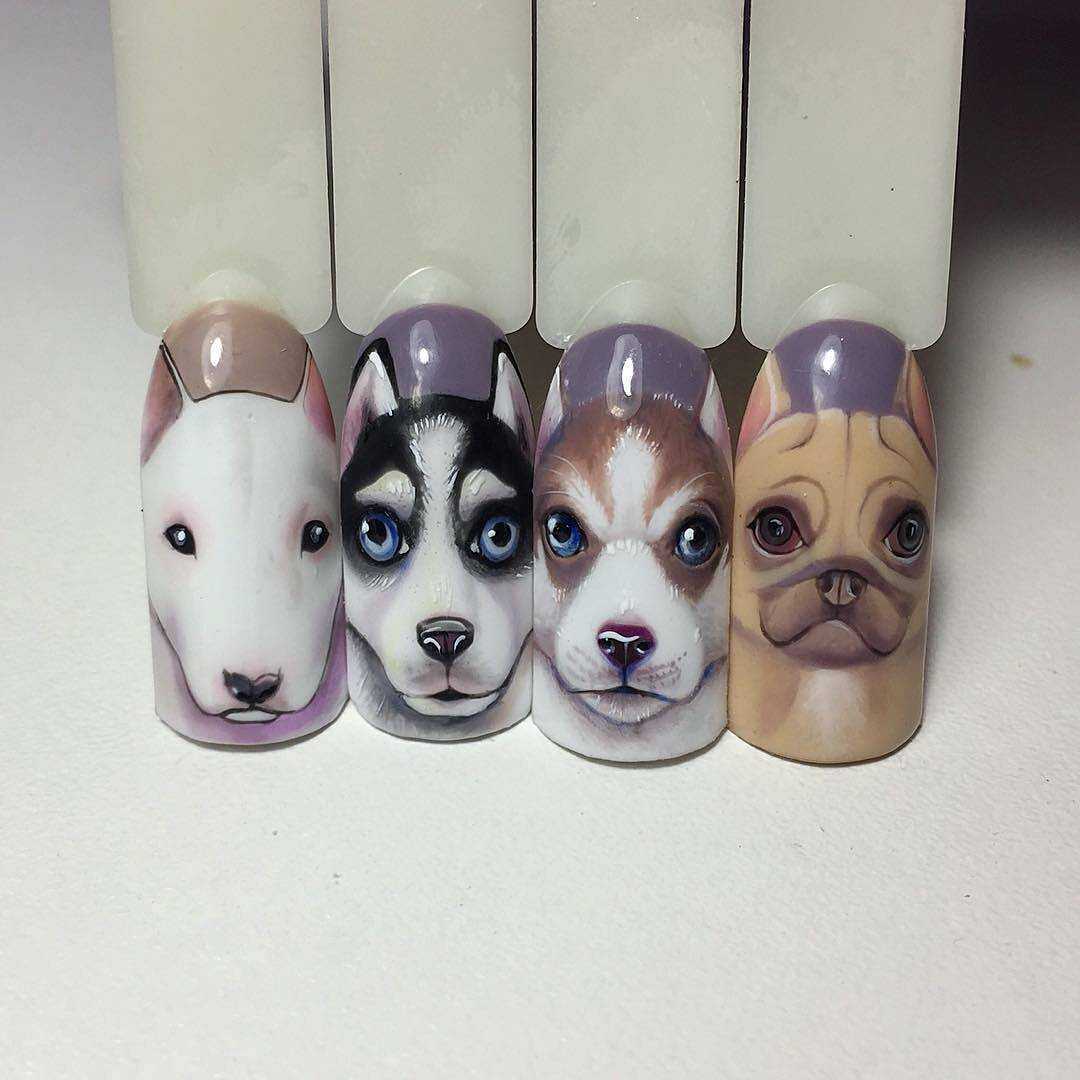 Хозяйка года позволяет создать огромное количество самых разнообразных рисунков в виде собаки. Вы можете изобразить на ногтях определенную породу (сегодня насчитывается около 400 пород) и создать собственную уникальную собачку.