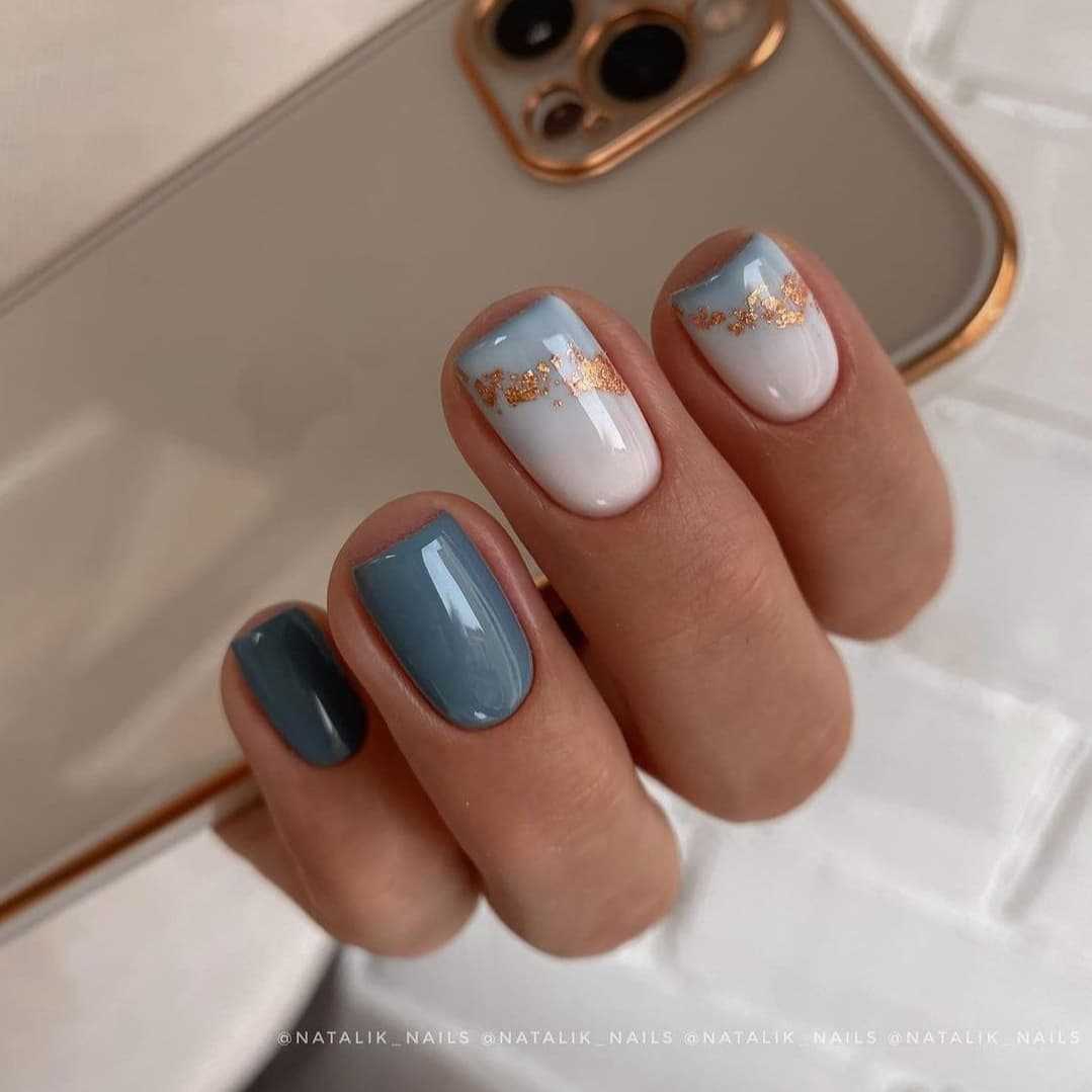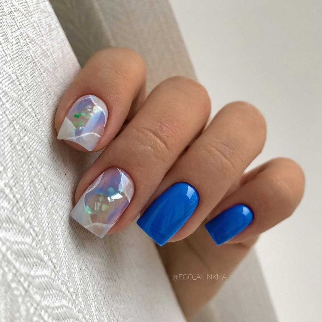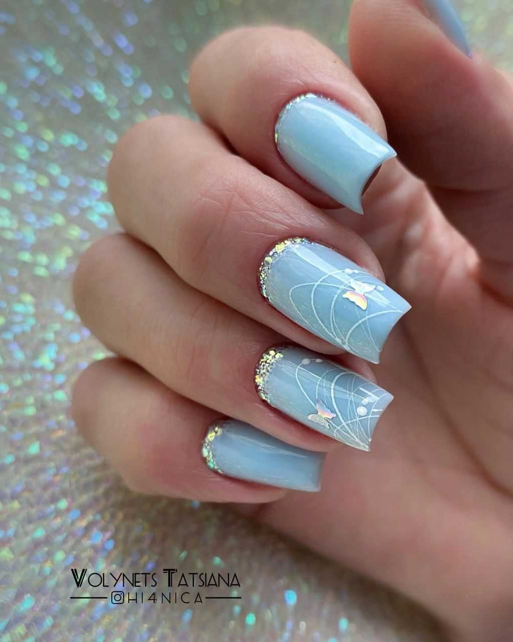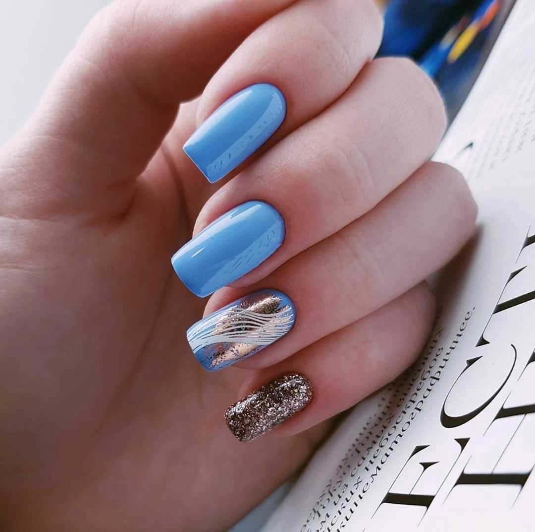 Пастельный голубой подойдет для разной формы и длины. Он гармонично сочетается с любыми оттенками кожи. В сочетании с серым цвет может создать элегантный и женственный образ. Его стоит использовать в качестве основы для рисунка или для однотонного покрытия.