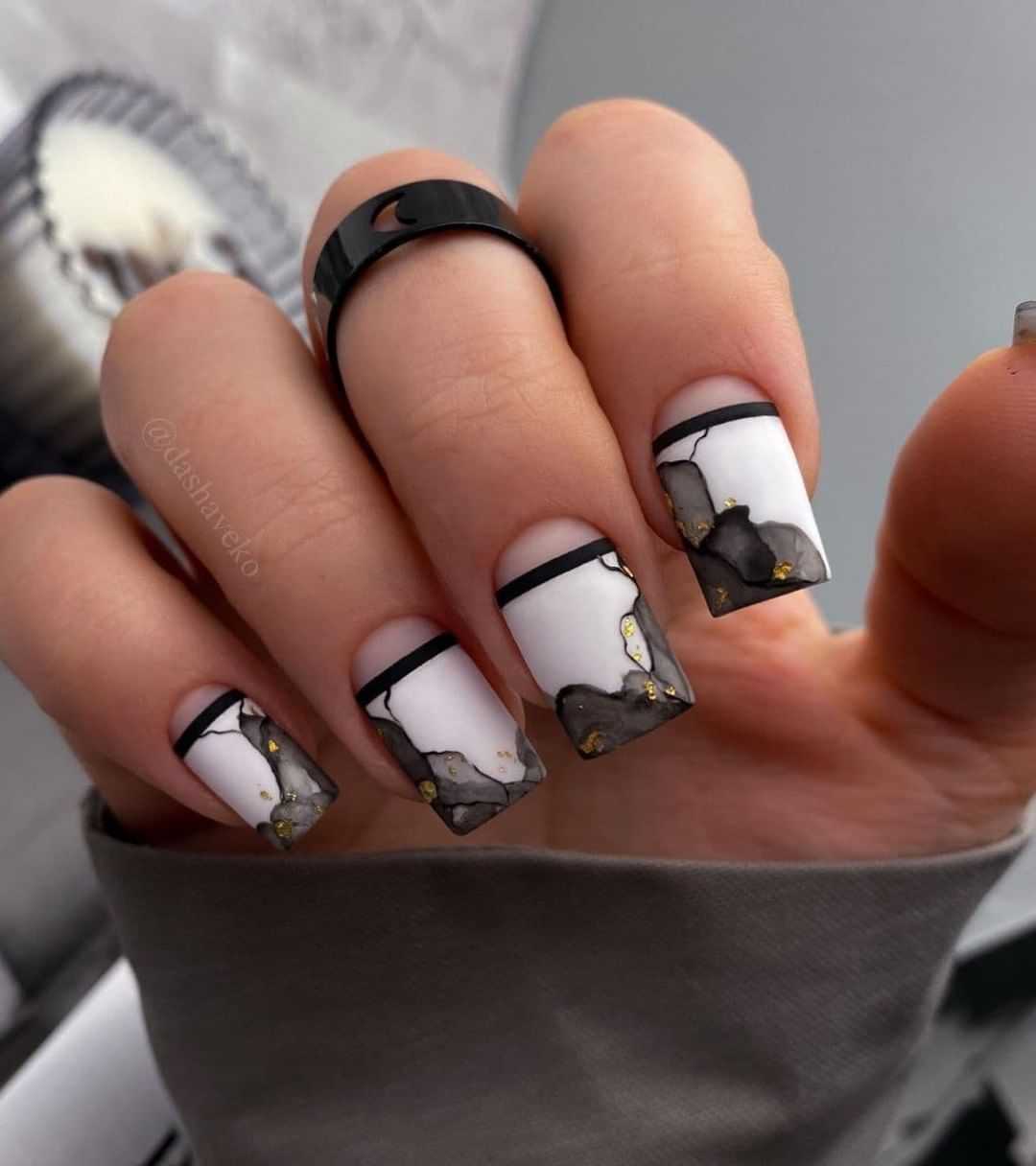 К модным цветам лаков для ногтей также можно отнести противоположные друг другу белый и черный. Белые ногти очень изысканные и нежные, отлично подходят к образу невесты. С другой стороны, поддерживать такие ногти в идеальном состоянии сложно: на белом лаке можно увидеть любую грязь, пыль, появившуюся на руках на протяжении дня. Тем не менее, если регулярно мыть руки, белые ногти будут в хорошем состоянии.