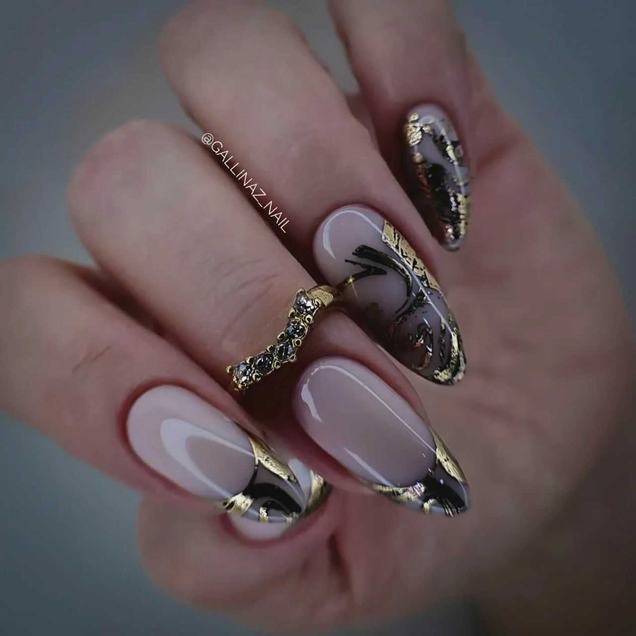 Если вы не хотите слишком лаконичный и стандартный вариант, то стоит украсить ноготки легким принтом, блестящими стразами или фольгой.