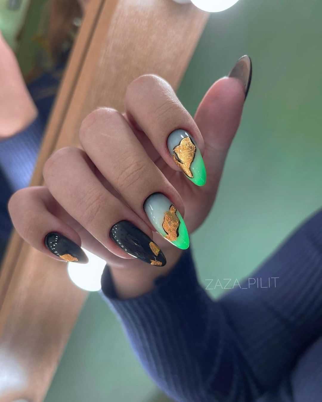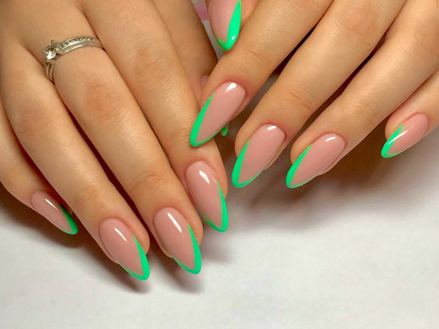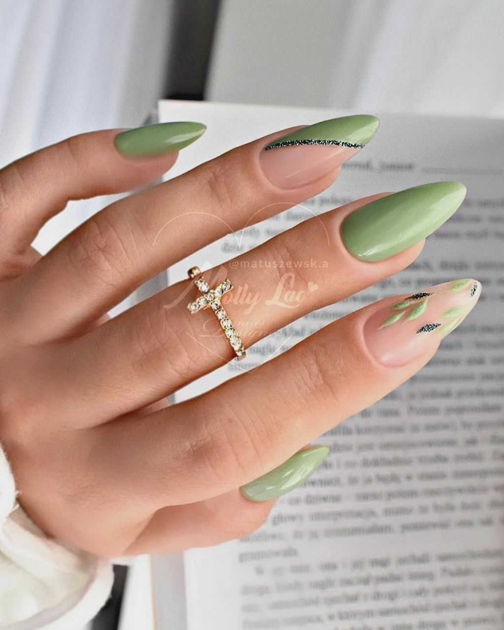 Этим летом актуален фисташковый зеленый. Дизайнеры рекомендуют использовать его в одежде и аксессуарах, поэтому приглушенный оттенок будет хорошо сочетаться и дополнять образ. Цвет подходит к более лояльным формам ногтей: миндалевидной, округлой, квадратной на ногтях средней длины и на коротких, в том числе.