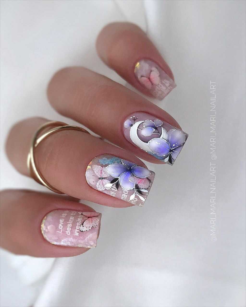 Рисунки могут быть самыми разными: в стиле минимализм, абстракция, флористика, геометрия, анималистические принты, неважно какой маникюр на коротких или длинных ногтях, каждый найдет для себя что-то интересное