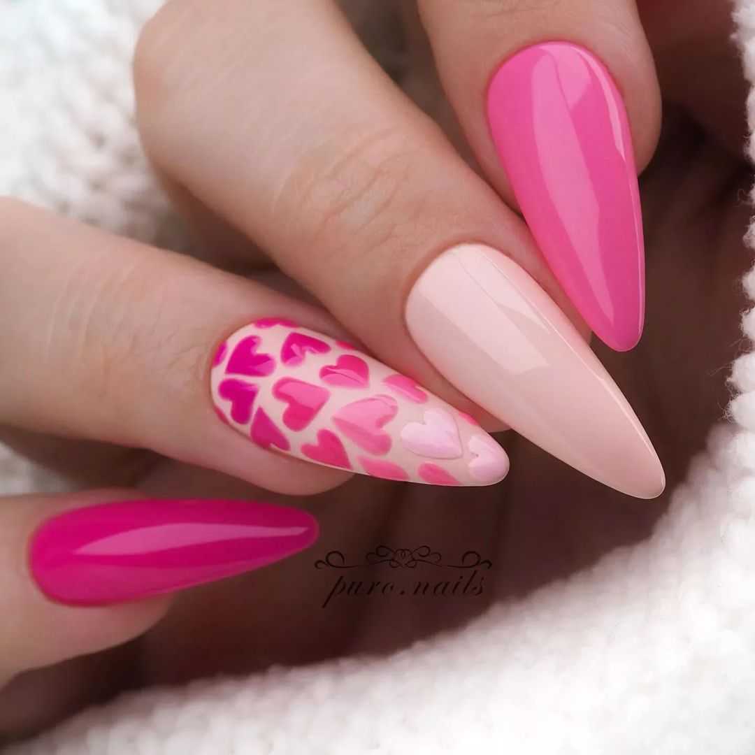 Один из самых трендовых цветов на лето 2022. Его можно сочетать с другими оттенками розового, комбинировать с желтым и зеленым. Однотонное глянцевое покрытие смотрится не менее привлекательно. Оно может украсить ногти юных девушек и респектабельных дам.